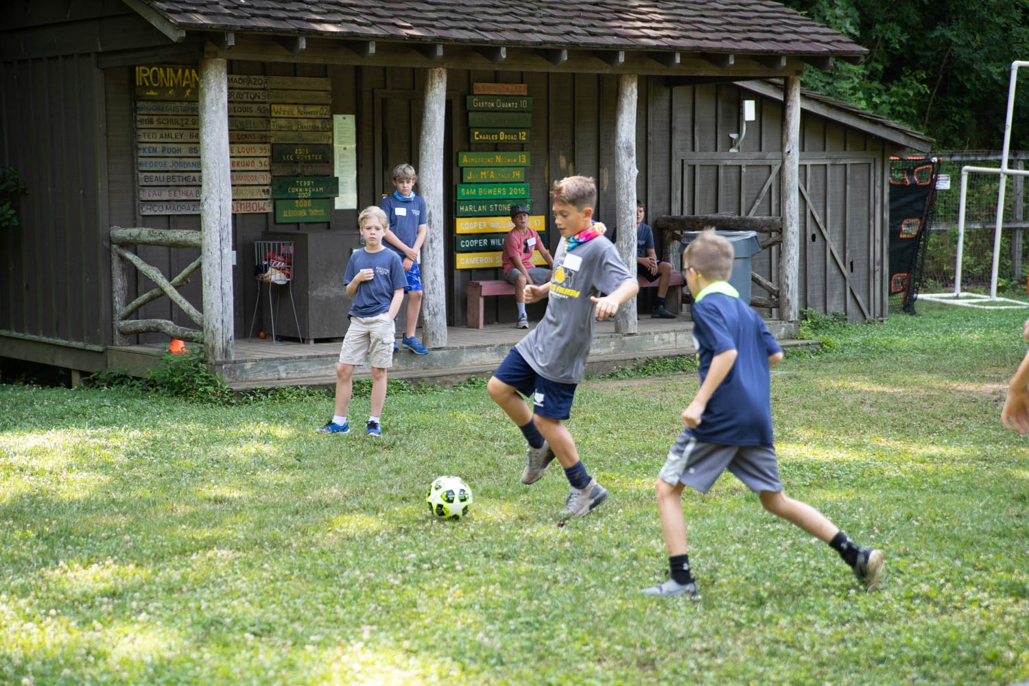 After you all started heading back home today, the action began with no hesitation. Before a hearty lunch of chicken and dumplings, the boys had a quick cabin meeting to officially meet each other, and then gathered as a camp community at Morning Watch for our welcome meeting.