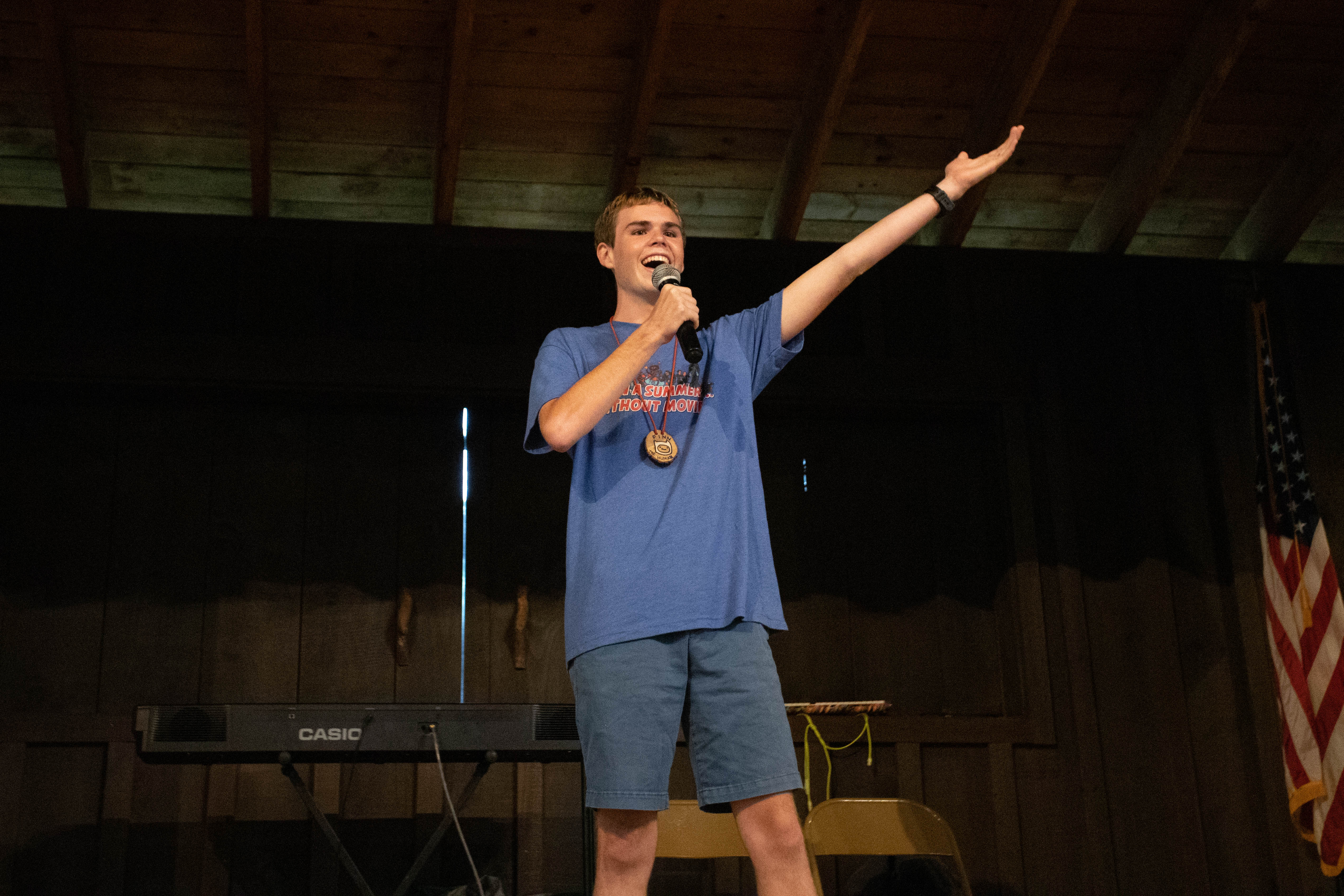 James and Ridgeway performed the song “Life is Fun” together, and John M. shared his voice with a beautiful solo. Finn had great stage presence and encouraged fun crowd participation while singing “Never Gonna Give You Up.” A group of 9 campers, led by counselors Patrick Greenwood and Burt Young, went by the name “Tay Tay’s Boys,” and sang along to Taylor Swift - they had the whole gym on their feet, jumping around and singing at the top of their lungs!