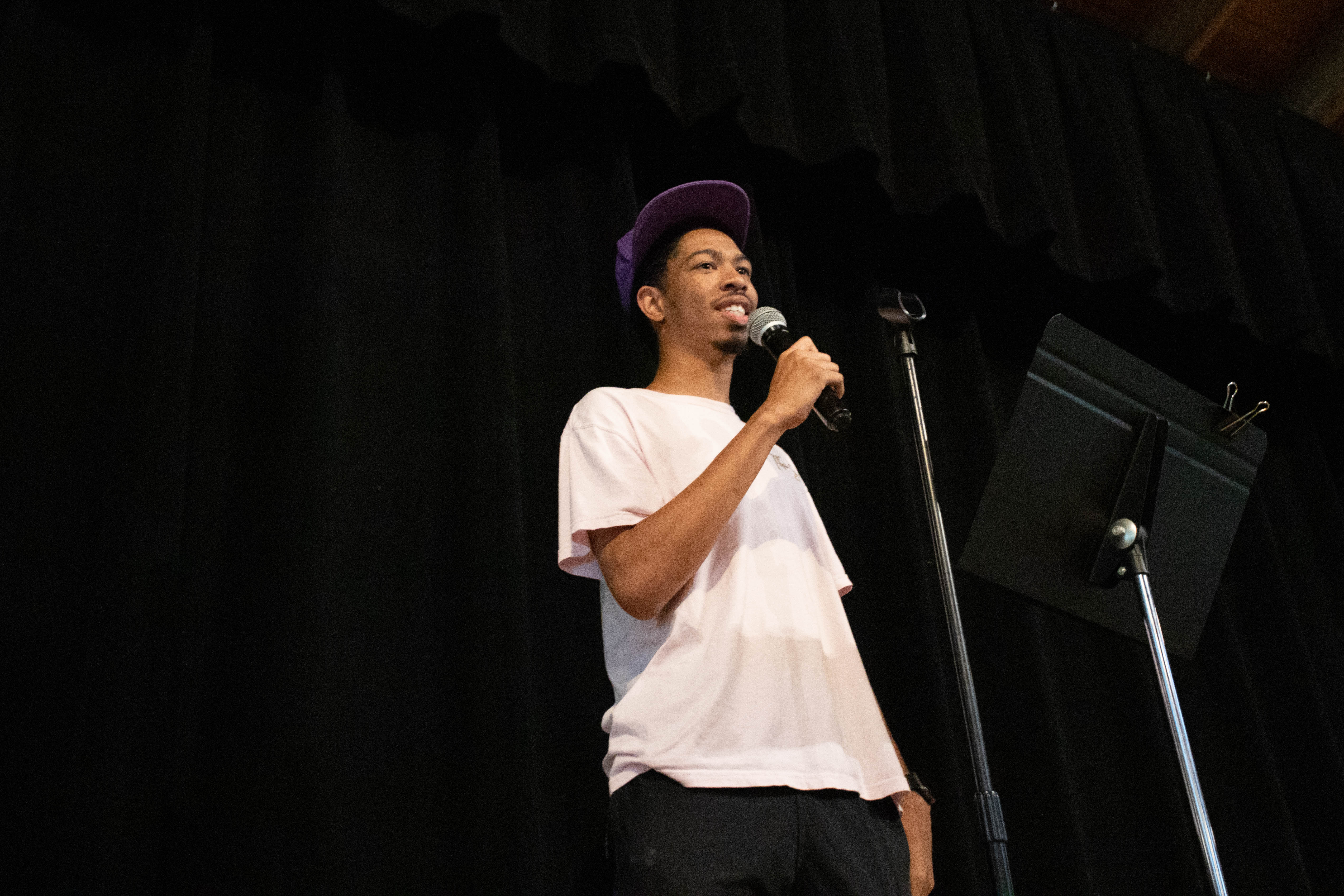 Zach and Cal told jokes, and Zaki impressed everyone with his musical talents, playing both the keyboard and the melodica at the same time. Sunny unicycled around the whole gym, using just one pedal at times and even jumping off the stage without falling off! Afterwards, Coley and Carson played a duet together with a guitar and ukelele.