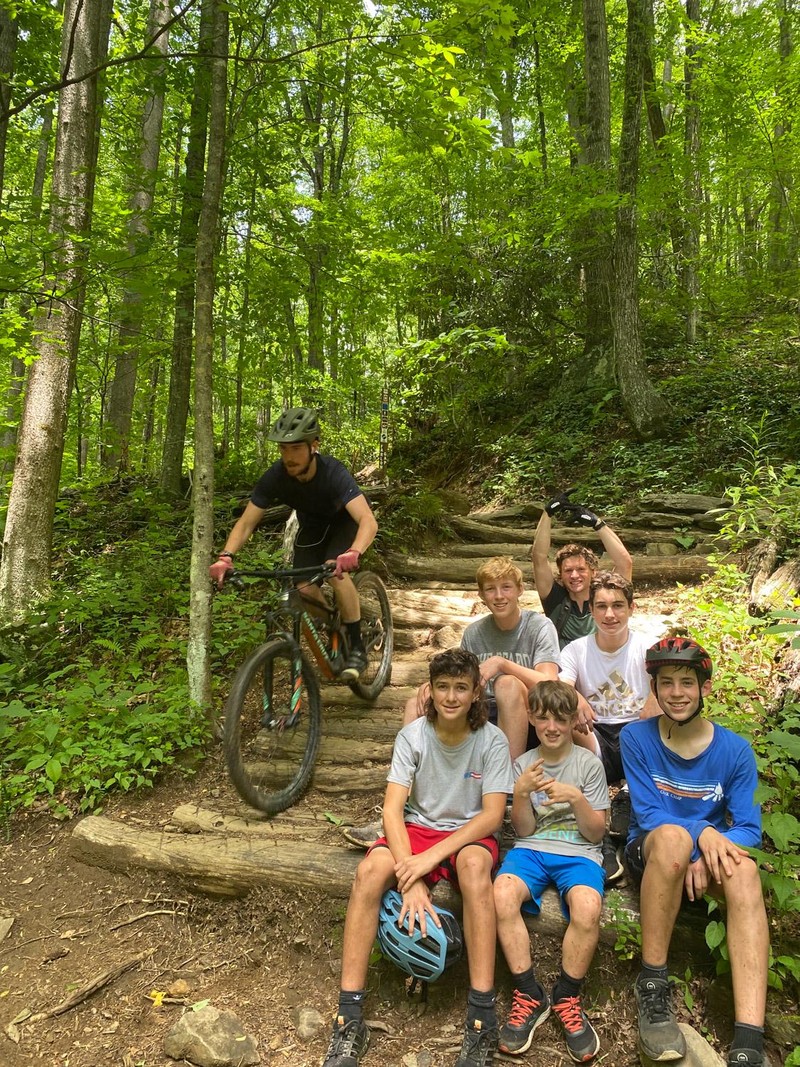 This is Cooper’s first year as a counselor after being a camper for many summers, and he remembers riding the same trails as a camper with James Hendershott, the head of mountain biking at the time. “We rode the same loop from Daniel’s Ridge, to Thrift Cove, to Lower Black,” Cooper said. “James was the GOAT.” Now Cooper gets to be in the same position after coming full circle, taking the next generation of campers out on trails that they’ll remember for a lifetime.