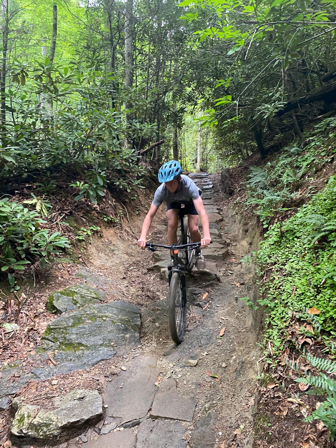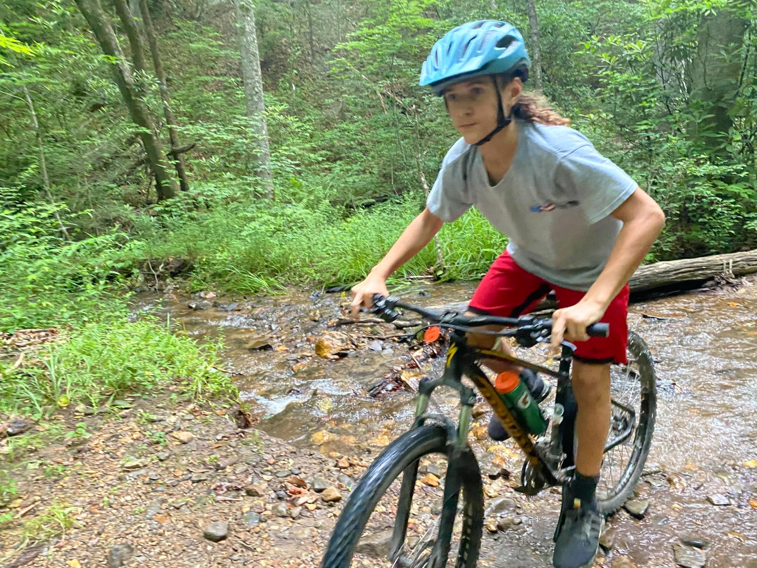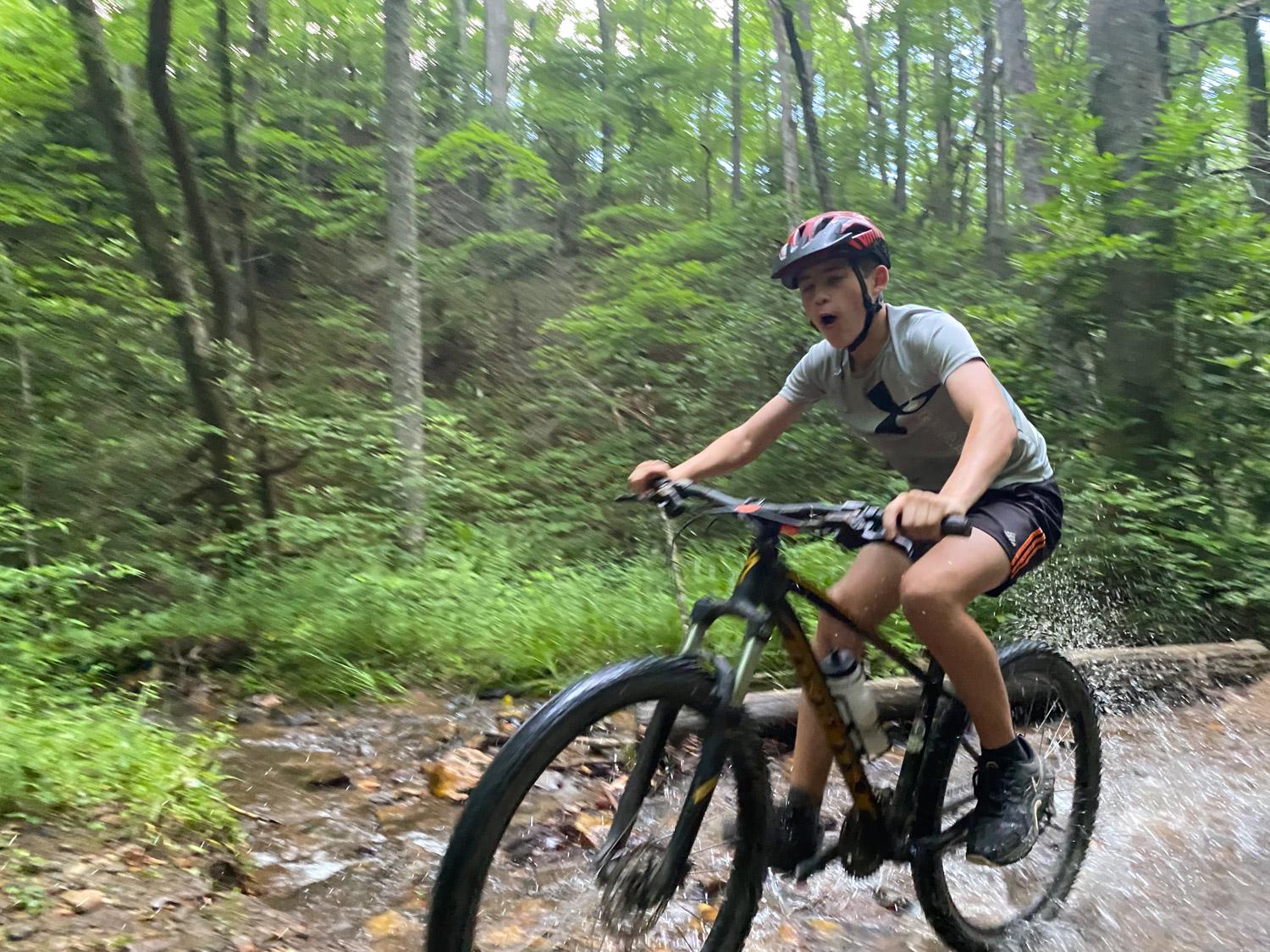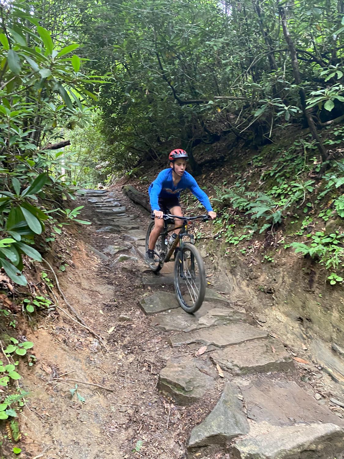 Just like Phillip, Cobin’s favorite part of the trip was also the Lower Black Mountain trail. “I really liked our campsite too,” he said. Cobin couldn’t decide if the rock gardens or the hills were the hardest part, but Pisgah is known for both! One of the challenging hills that Cobin remembers was Trace Ridge, but the reward of riding down Spencer Gap afterwards was sweet.