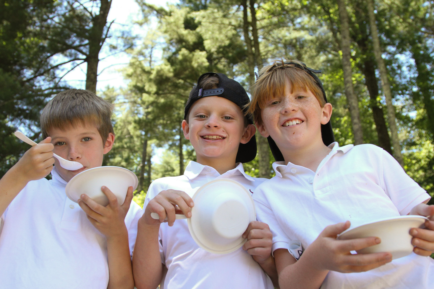 After church, we had a quick free choice time and then enjoyed Sunday lunch of ham, mashed potatoes, green beans, and warm rolls! Sunday means sundaes, and the boys were extremely excited for the ice cream that awaited them after the meal! Cabins are dismissed to the ice cream line in order of their cabin inspection scores, which provides an extra incentive to keep a clean cabin.