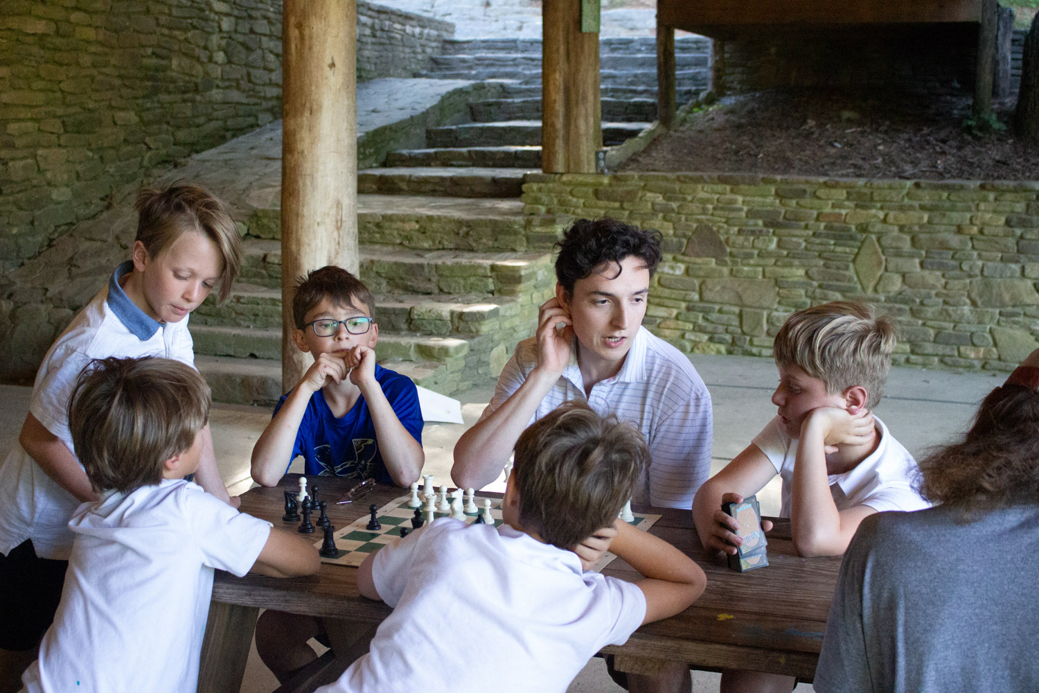 There was even more to choose from in the afternoon! During the 2nd half, boys could play in a lacrosse tournament, practice skits for Campfire, go on a run to the “top of the world,” play in a music jam session, learn about river safety on the paddling docks, join the pool party at the swim docks, play four square (Ford square!) with Ford, continue Talent Show auditions, rehearse for the upcoming play, check out the snakes at Nature, paddle some kayaks, build fires at OSC, go bouldering at the climbing wall, fly fish on the upper lake, or glaze pottery at arts and crafts. All of these choices were written down on posterboard under the Dining Hall, so boys could choose where they wanted to go and how they wanted to spend their afternoon!