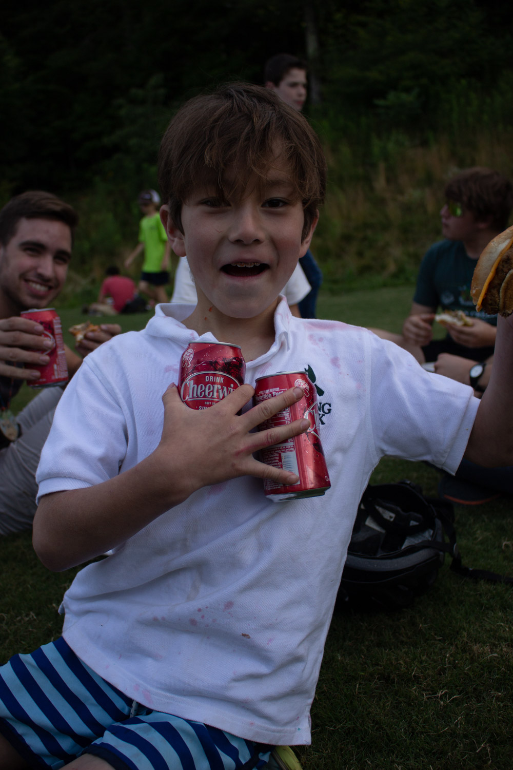 In the afternoon, we switched gears from the quieter, more reverent part of the day, to the exciting games and activities planned! There was plenty of revelry and lively play with the assortment of special signups offered by our counselors. During the first half of the afternoon, boys could choose to play “knockout” in the gym with basketball, run lake laps to see who could set the new record, learn kickboxing with George, create a tie dye in arts and crafts, work on ultimate frisbee progressions, learn meditation techniques with Harry and Mate, play in kayaks at the Yak Shak, audition for the upcoming Talent Show, play Go under the Dining Hall, work on bike maintenance and trail work with mountain biking, play “touch the fence,” read with the “reading club” on the grassy knoll, play pickleball, join the “mystery hike,” or try speed climbing at the wall.