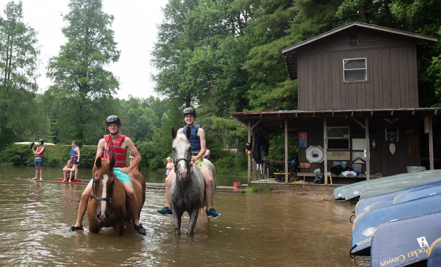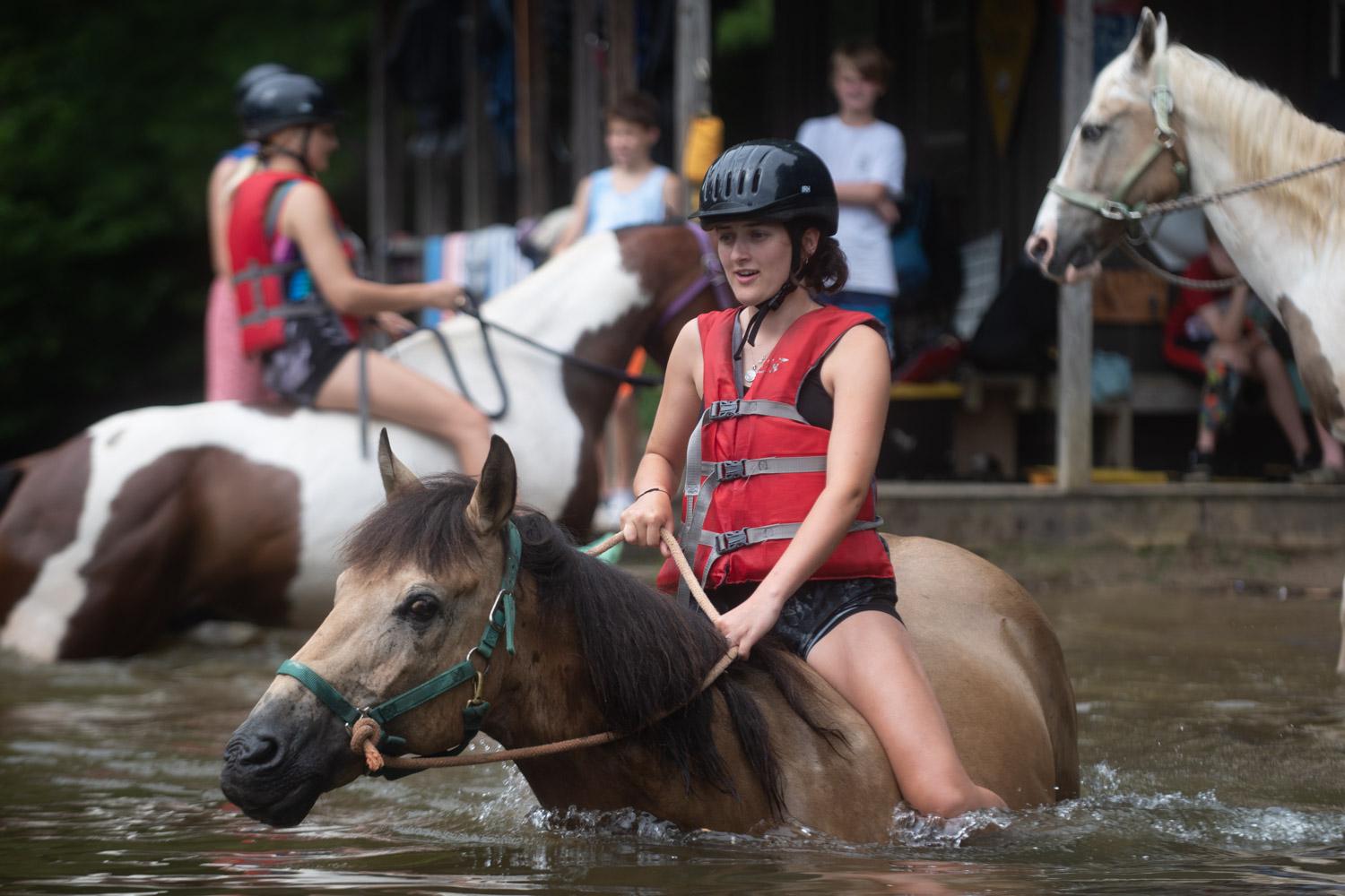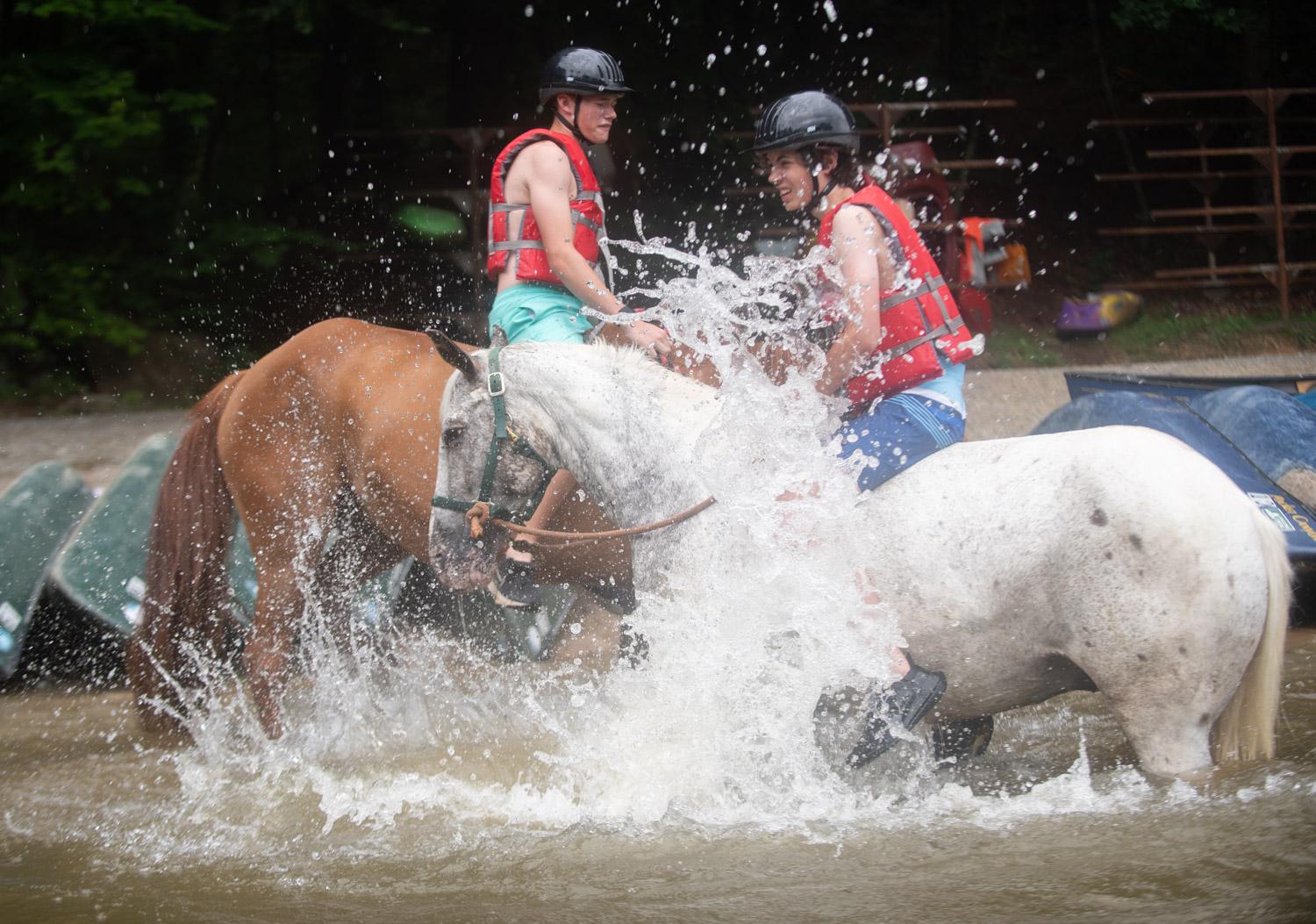 On Friday, the barn hosted a “horse swim,” where boys rode bareback down to the lower lake and got to ride the horses as they swam around. Cajun loves being in the water more than any other horse in the barn, and couldn’t get enough. HT was a little less confident, but definitely curious. Once he got in he enjoyed splashing around! It was hard to tell who was having more fun - the horses or the boys. Marshall L. said he enjoyed horse swim day. “It’s awesome, and the horses have fun,” he said.