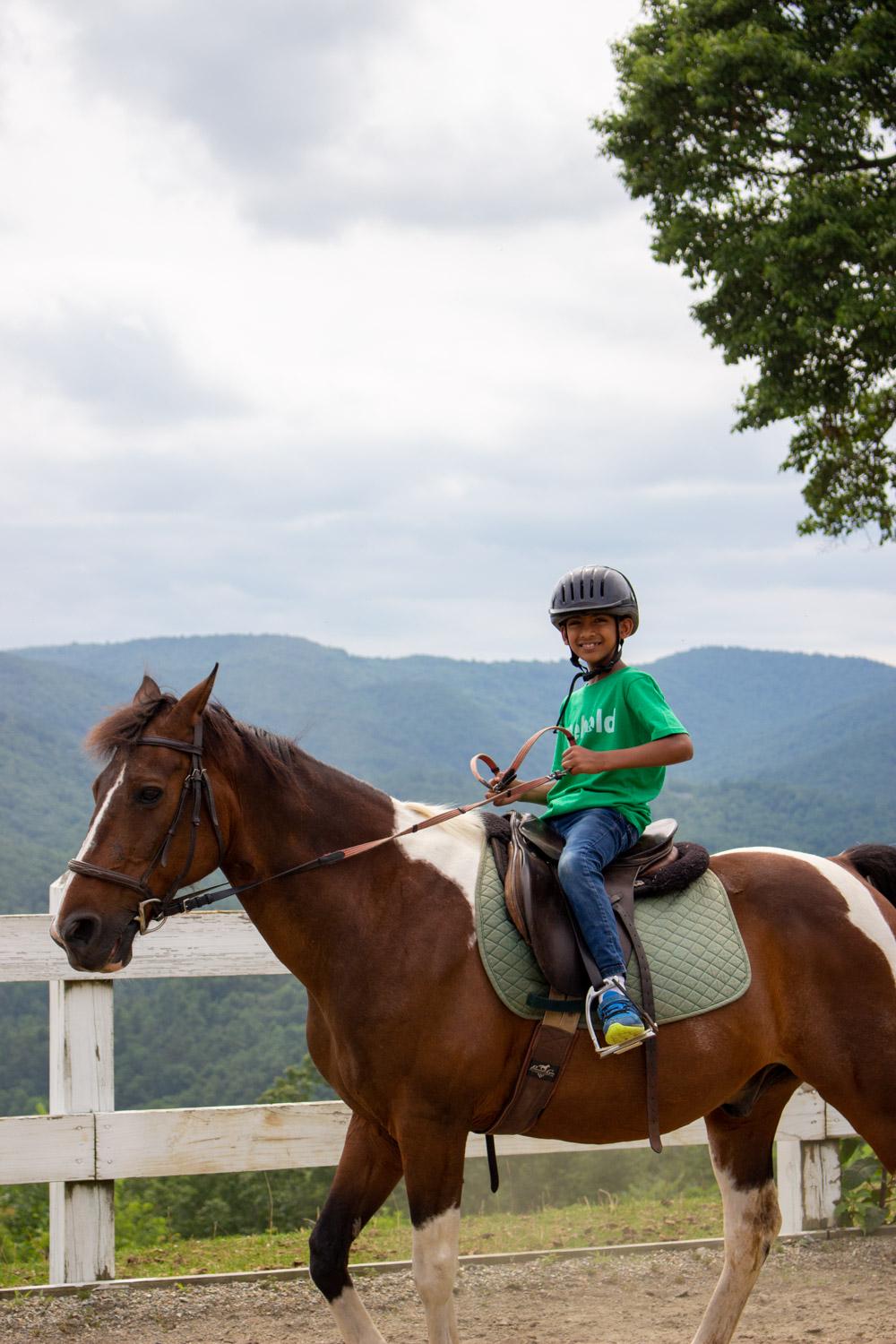 Vedaan is here for his first summer at camp, and he had so many goals that it was hard to keep up! “I want to learn how to play guitar,” he said. “Maybe I’ll do OSC. Or tennis. Or lacrosse.” With so many good options, it’s hard to choose what to focus on at camp! But then Vedaan mentioned, “I really want to get a Warrior or Ranger in horseback.” He was already signed up for a horseback lesson that afternoon, which would help him get started towards this goal. We talked about how earning the level of Warrior can take multiple summers, so it can be a great long-term goal to have.