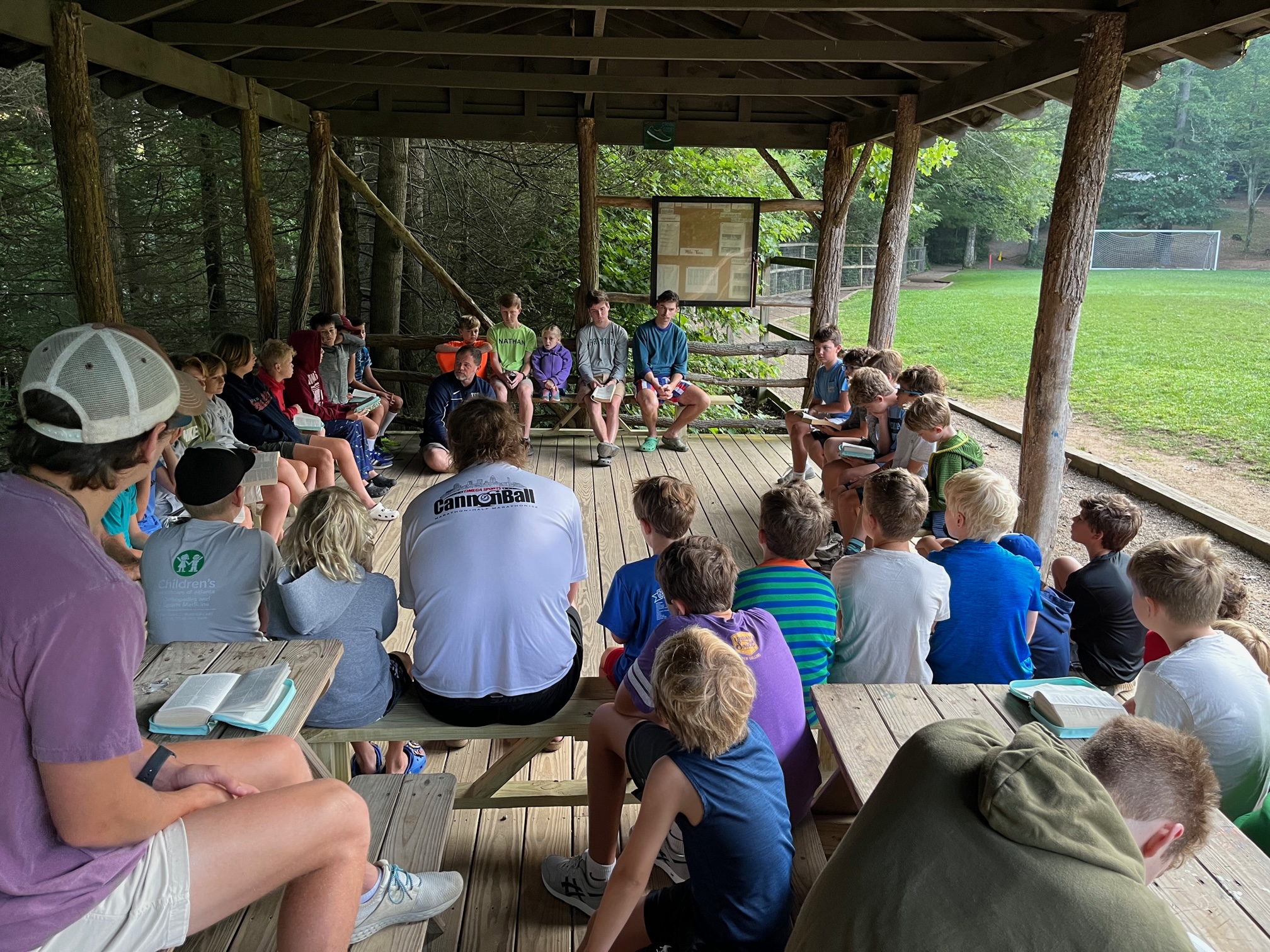 Every weekday before the wake-up bell rings in the summer, you will find a group of campers, counselors, and directors, with eyes struggling to stay open from a mixture of morning sun and fatigue, walking the grounds of Falling Creek. We gather for Morning Spark at “The Goody Shack”, named after longtime Falling Creek Program and Staffing Director, Jim Goodrum. Morning Spark is a time to open up the Bible together and have a conversation around who God is and what we think He is saying. It is a simple, wonderful, inspiring way to begin the day.