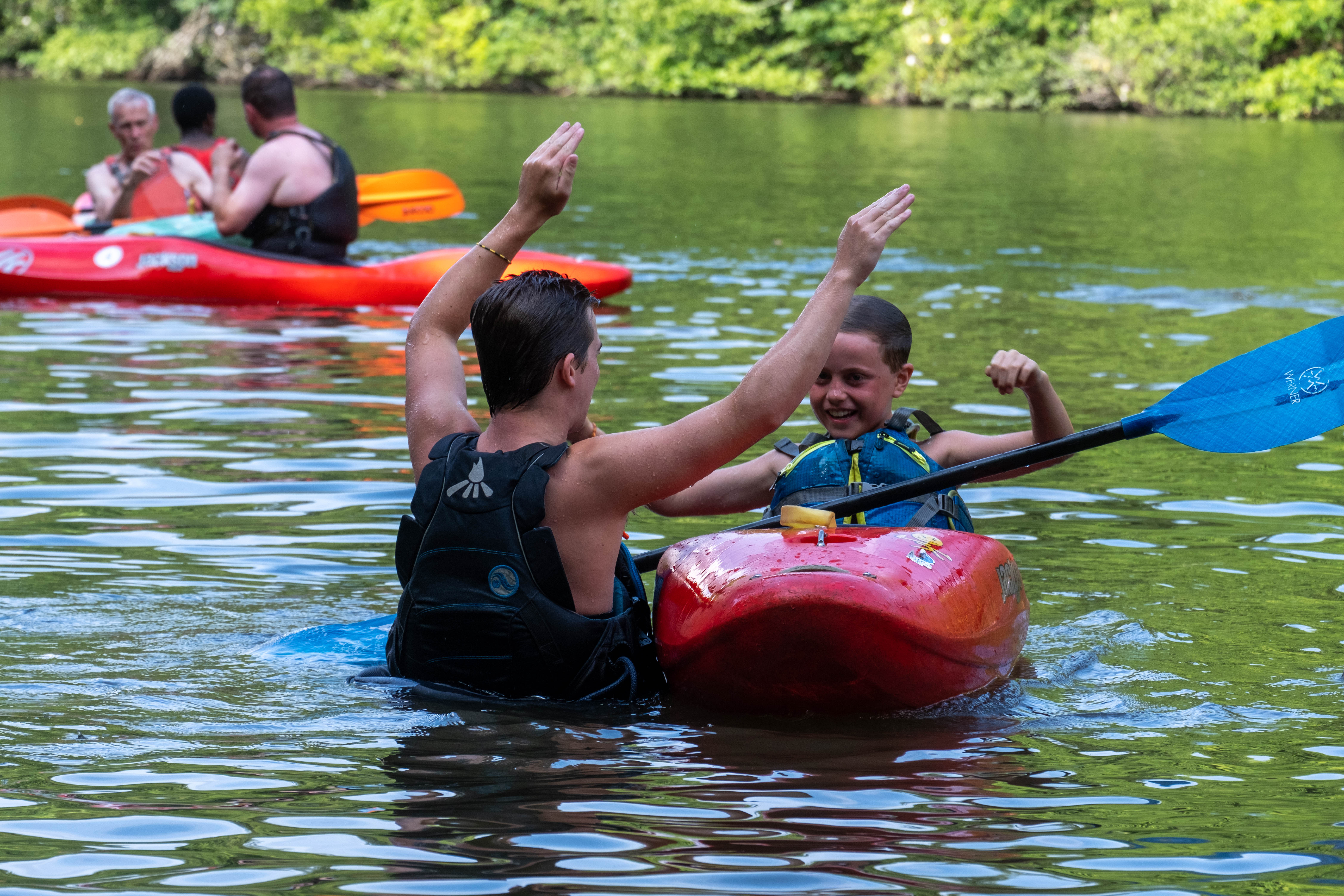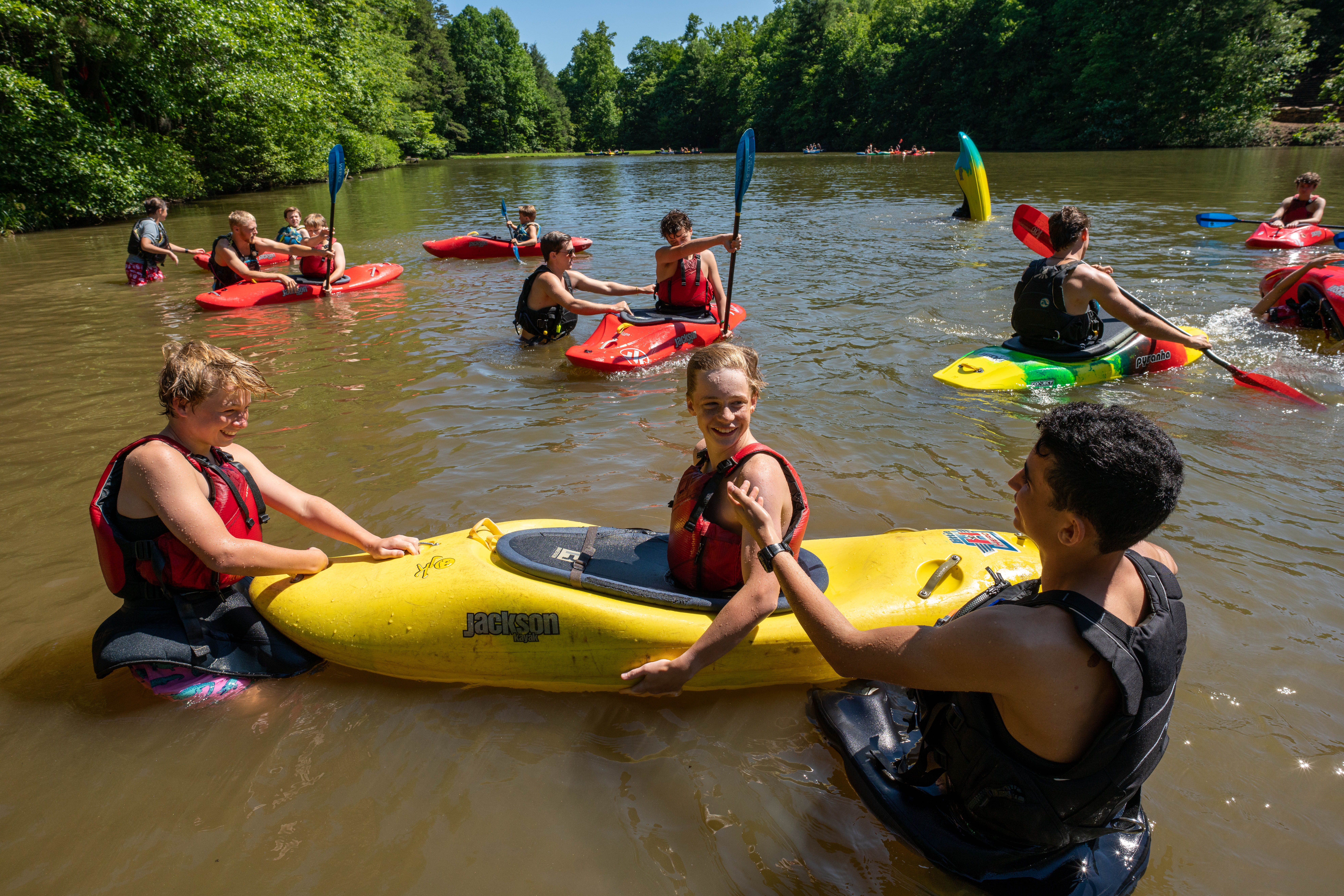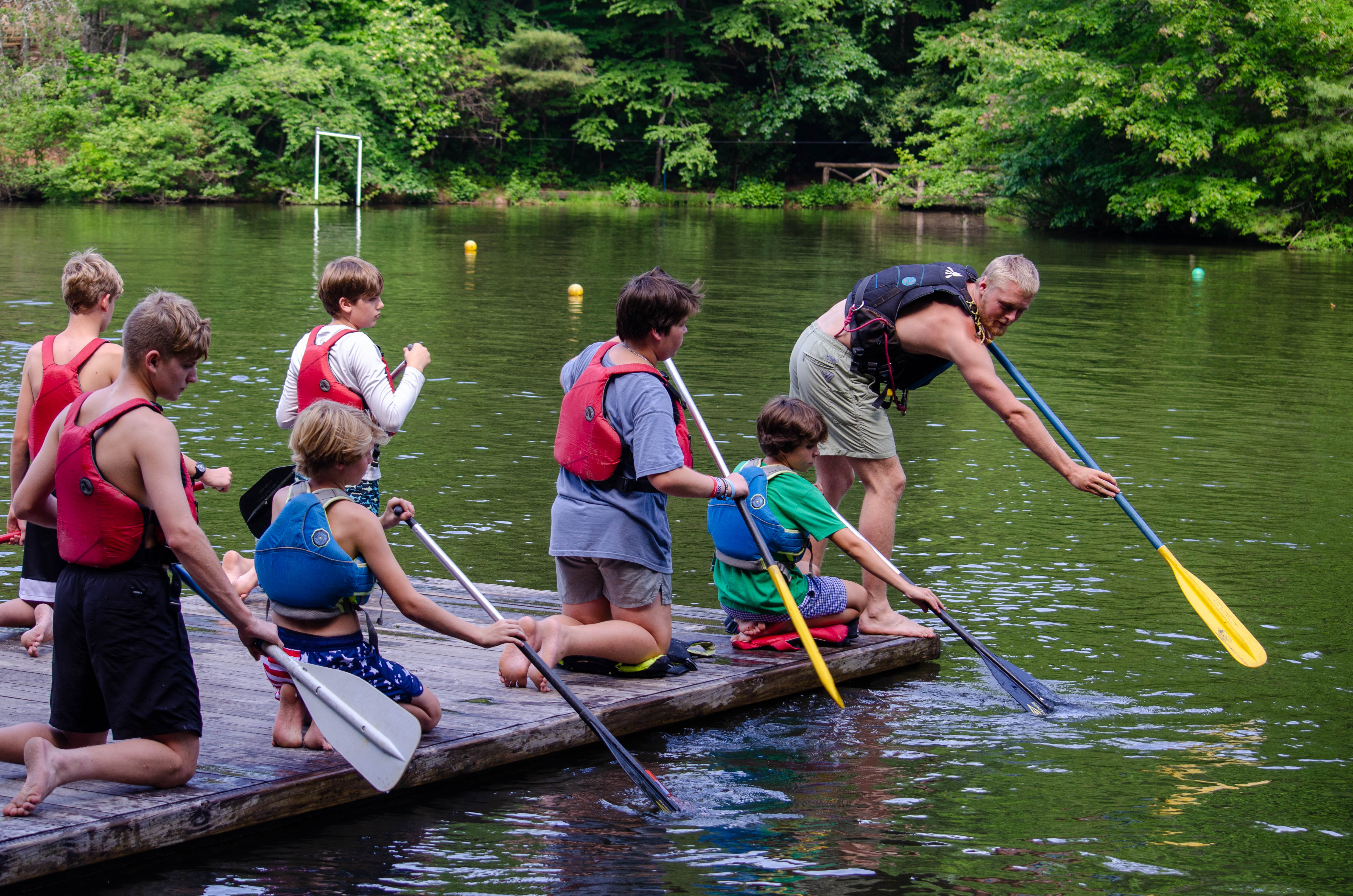 That afternoon, the instructors were busy taking campers through “preps” to get them prepared and qualified for further adventures in the camp session, when I made my way to the docks. I leaned against the Yak Shak, laying low and observing, staying out of sight. Suddenly the instructor Max Feild yelled, “Uh-oh Sloan, you getting in?!”. I responded with, “maybe in a bit. I’m going to watch first.” That’s when our “Greybeard”, the experienced, wise sage John Burton, (who just so happens to be a former Olympic paddler) called to me from the water. “Get in. Let’s do this.”