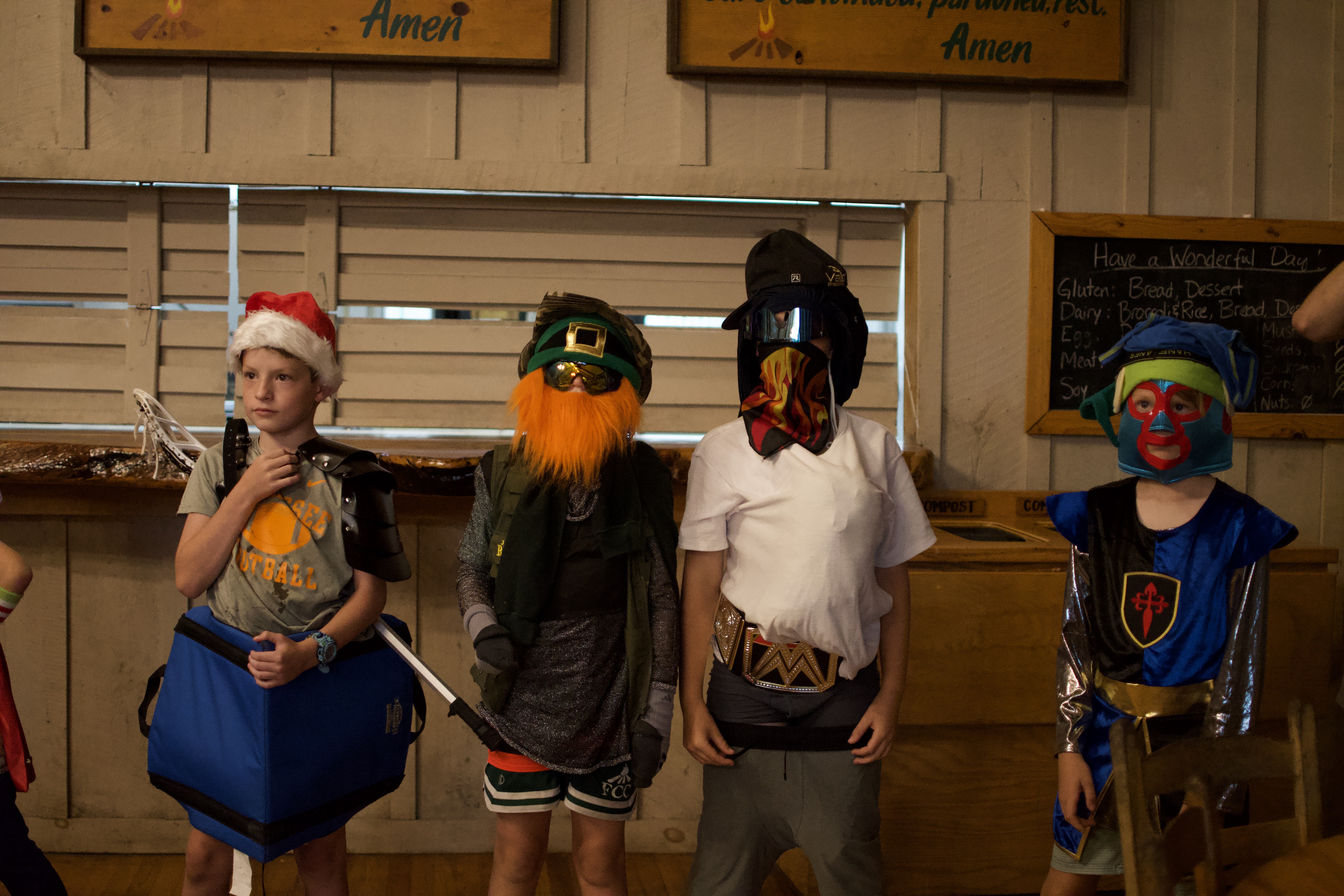 Evening Program - We played BINGO and there were dress-up and dance contests as a part of the program. It was the perfect way to spend a rainy evening, and the boys really went all-out with their outfits.