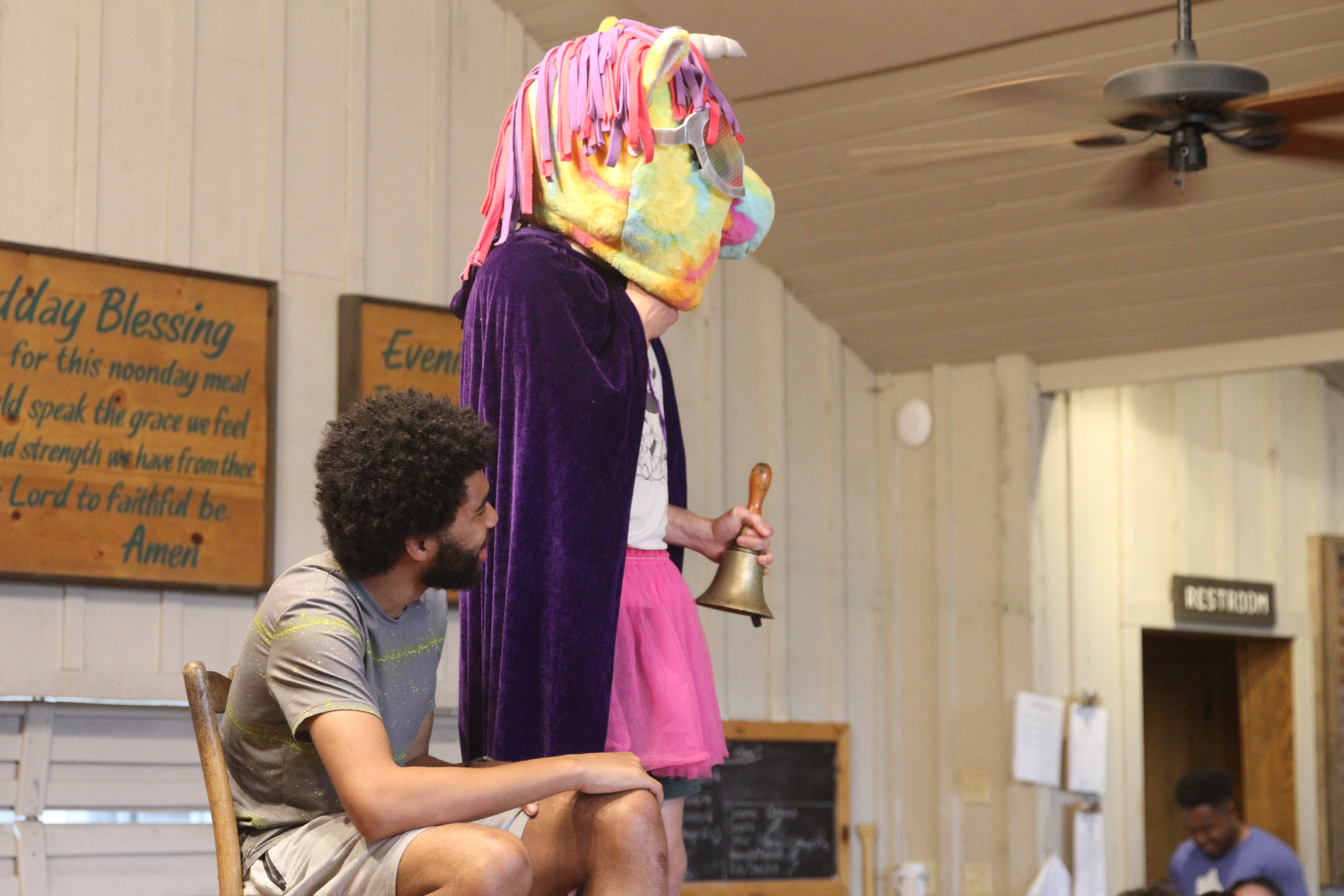 During dinner announcements, camp was transported into the year 2048, where everyone was survivors of the climate collapse, and all but the heartiest of plants and animals have gone extinct. The story went on to say that, “Among the Survivors, a select group hold memories of what came before the Collapse. And they all held childhood connections with a place in North Carolina, where they and their friends liked to go. It was called…Falling Creek.”