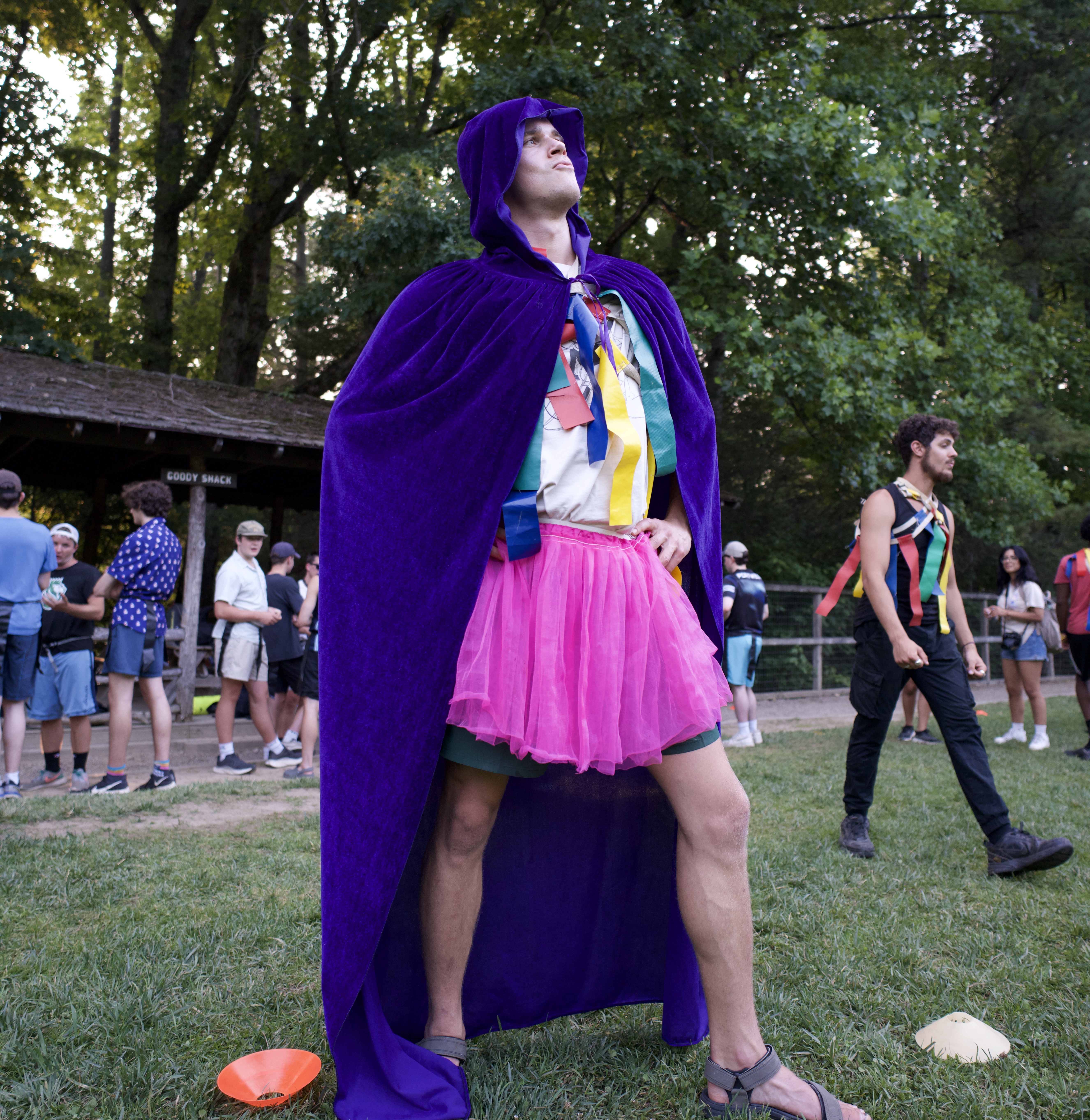 To start the game, all faction members reported to Morning Watch to put on flag belts, and the faction with the most flag bets pulled at the end of the game would win an extra “about seven” sprouts for their vault. Each faction was assigned a Vault in a different location around camp, that they were responsible for defending. The Vault is a small circle within a larger boundary marking a faction’s territory. Every Vault contained 30 Brussel Sprouts (playballs) to begin.