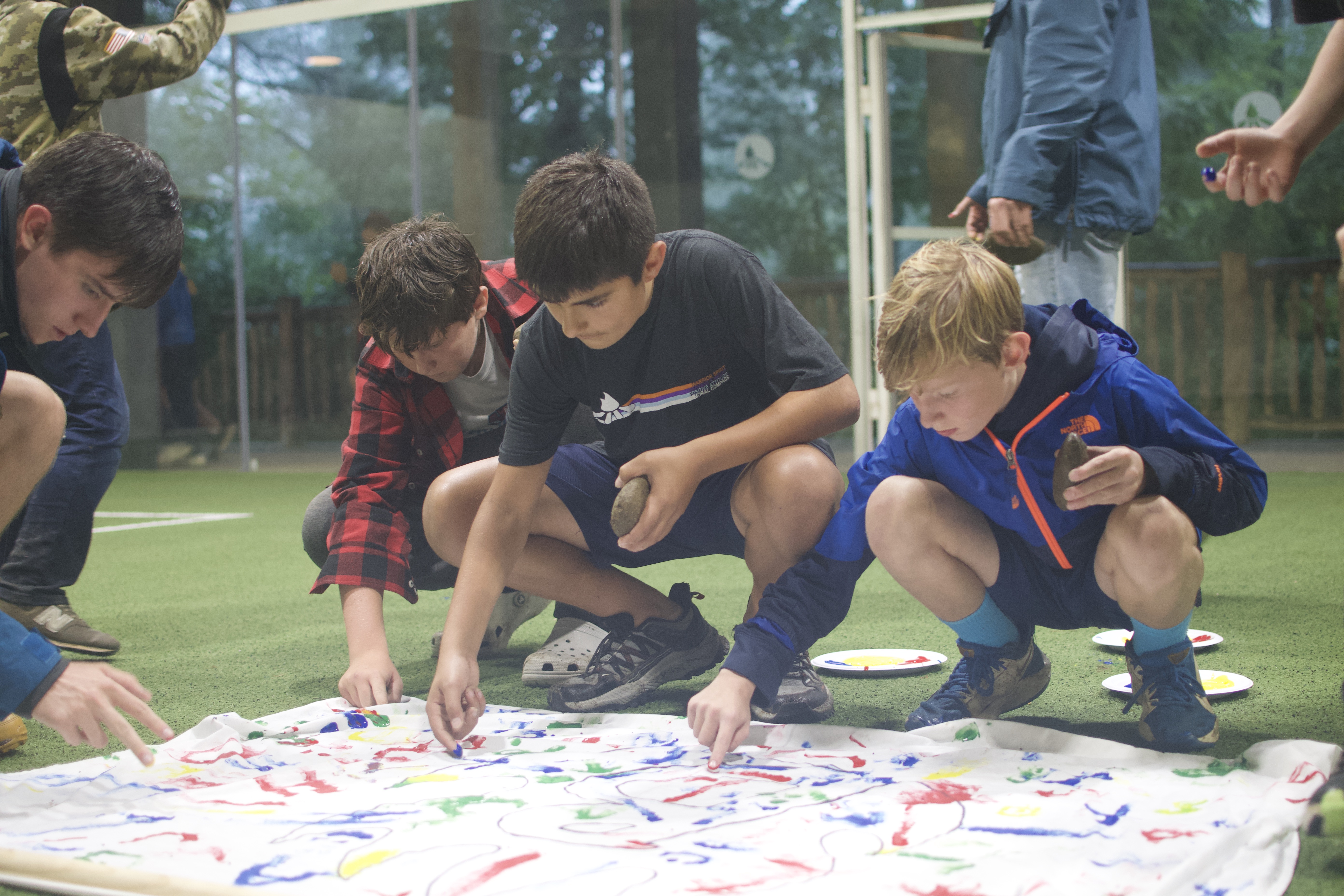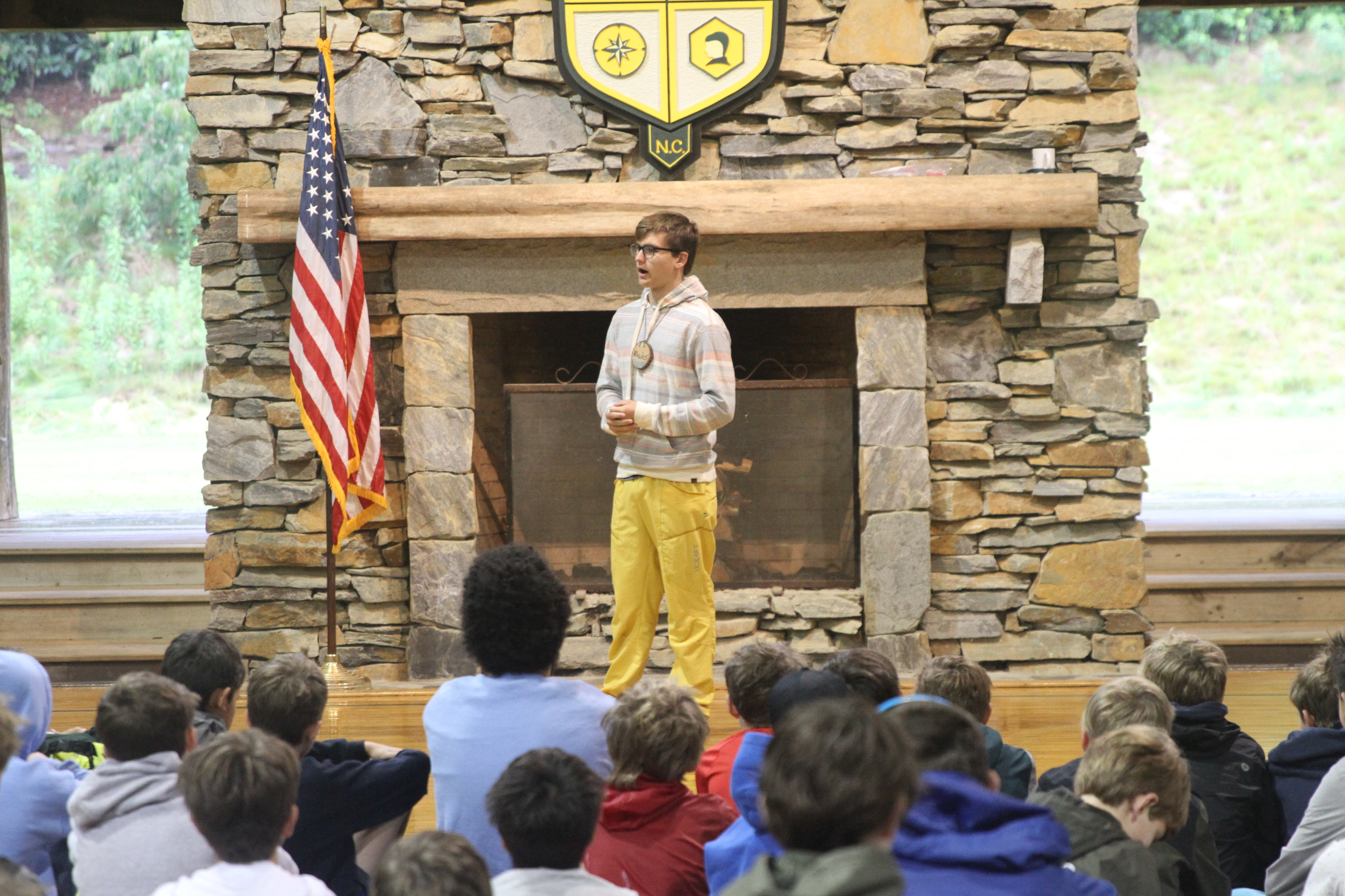There was a new tradition added this time, where each Cabin Line brought flags with their Line crest on them. Each boy had made their mark on the flags with paint, and the flags will continue to fly in their respective Line Huts as a symbol of the boys who made up that group.