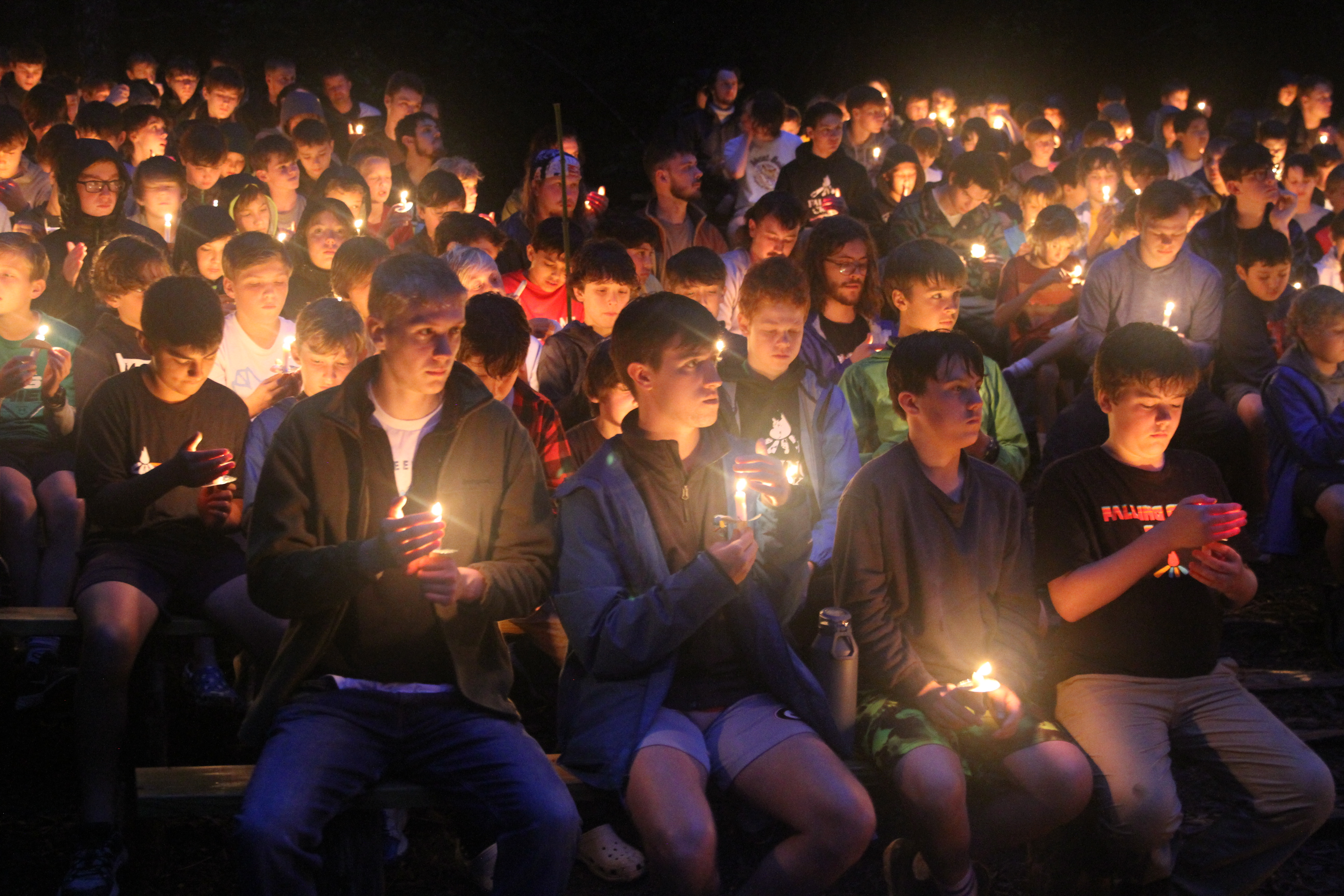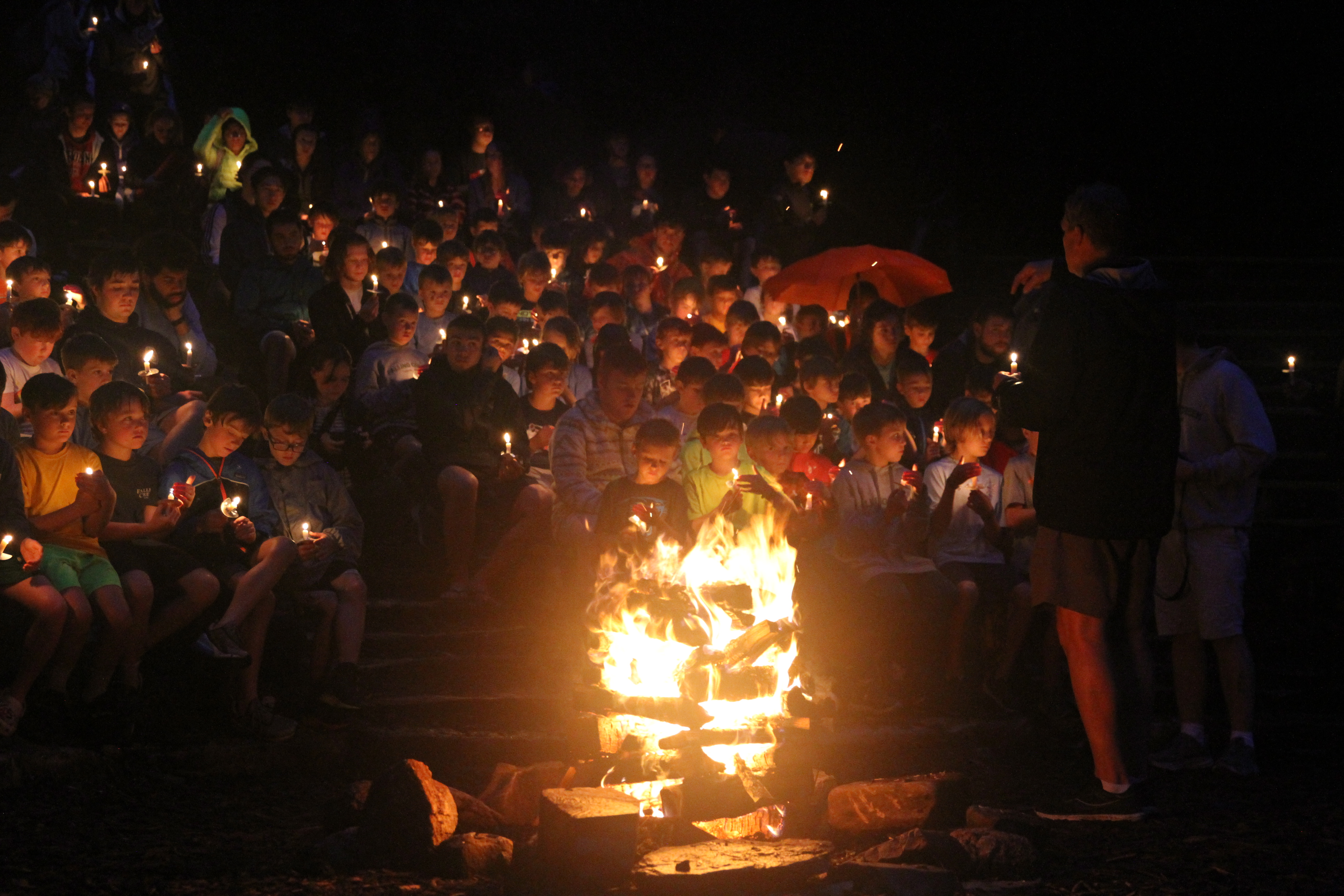 During Campfire, we enjoyed skits, songs, and finally the candle lighting ceremony. The first candle is lit from the central campfire, and spreads from there, person to person. Each boy lights his candle from another, symbolizing the individual light we hold, and how it costs us nothing to share our light with others.