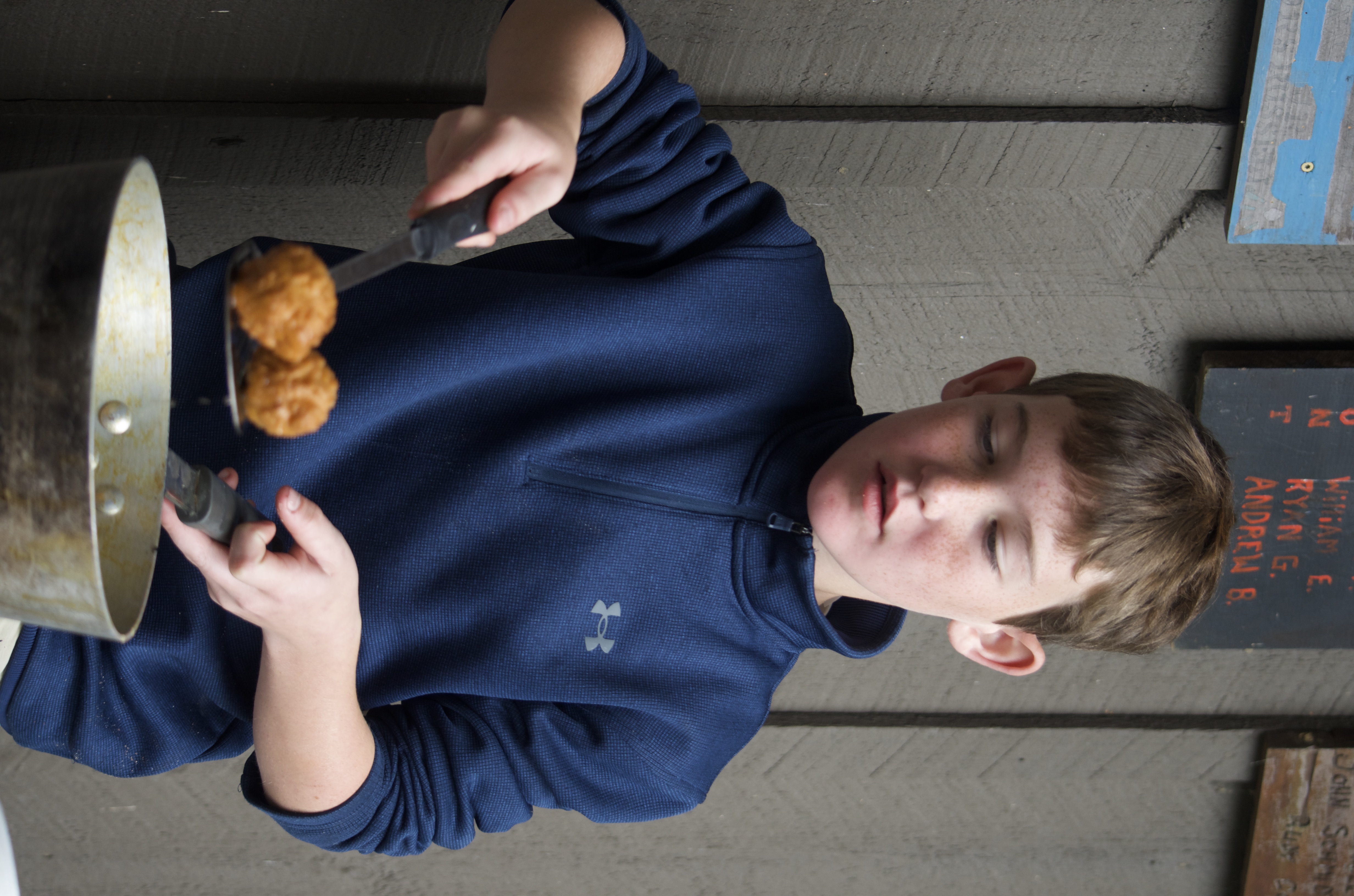 During Free Choice time before dinner, boys were able to help cook (and eat!) Longenecker Lumps, which are warm, fried, doughnut balls covered in cinnamon sugar. Alumni will be familiar with this tasty tradition, but if you want to learn the history (or the recipe!) you can read this blog.
