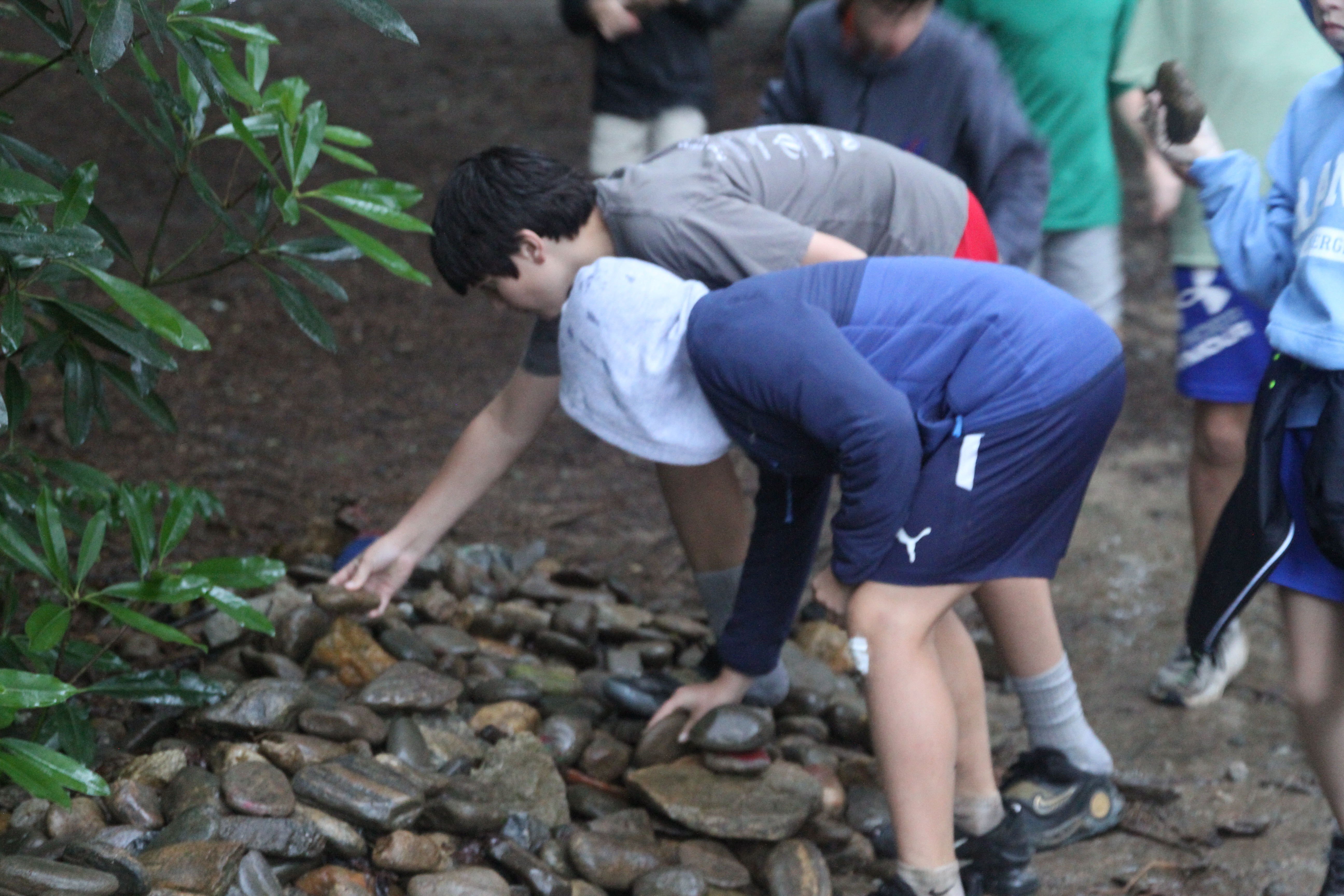 Thankfully, the rain cleared in time for Campfire, and we were able to gather together by the lower lake once again, to reflect on all the memories from a great session. As this was the final one, everyone brought an Ebenezer rock to add to the wall leading to Campfire. Every Ebenezer rock has been placed by a single person during their final Campfire, and serves as a physical reminder for each camper and staff member of the contributions, memories, and experiences they have had during the session. This meandering stone wall reminds us, too, of the spirits of all those who have been part of the Falling Creek Camp community – past and present.
