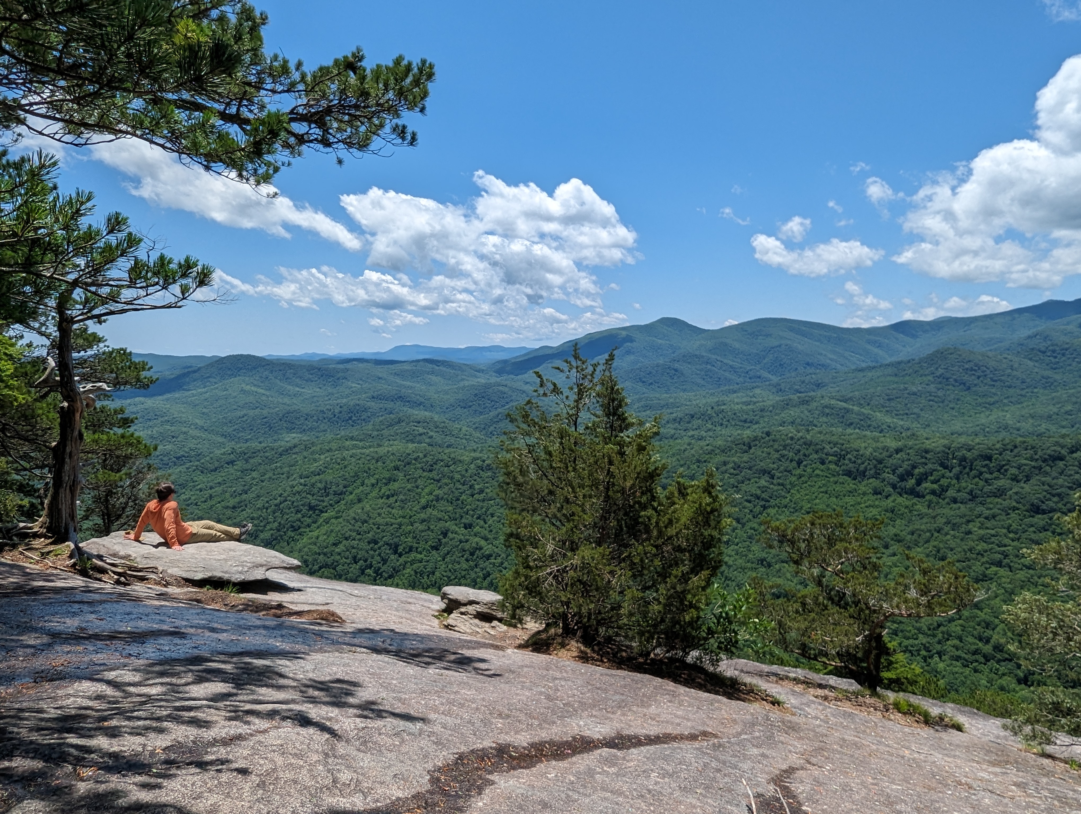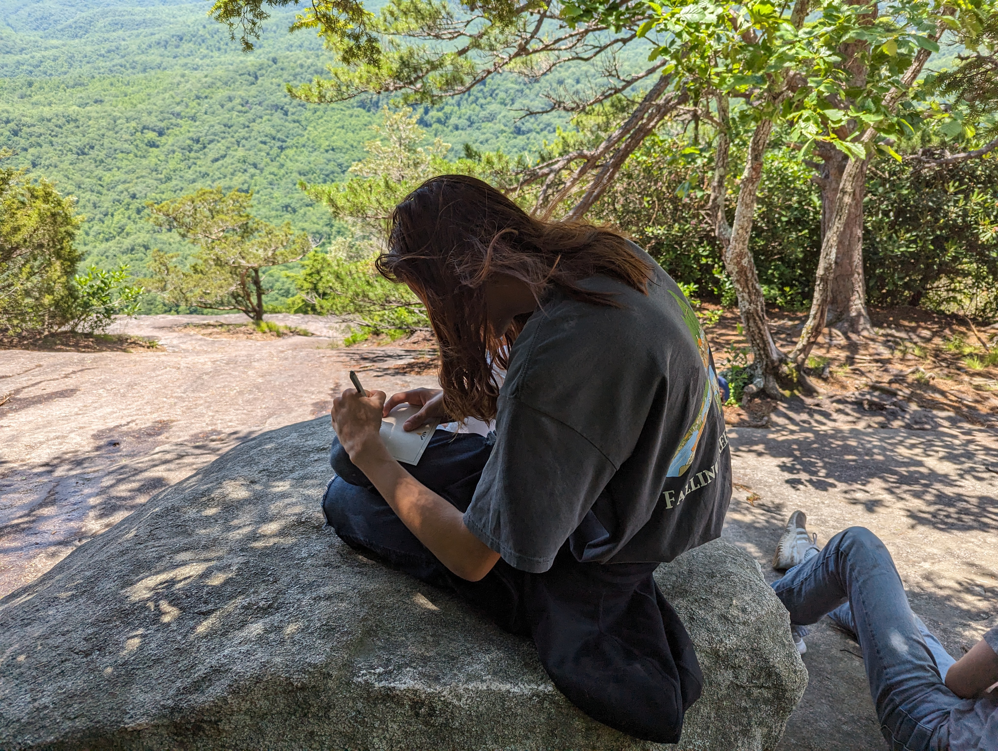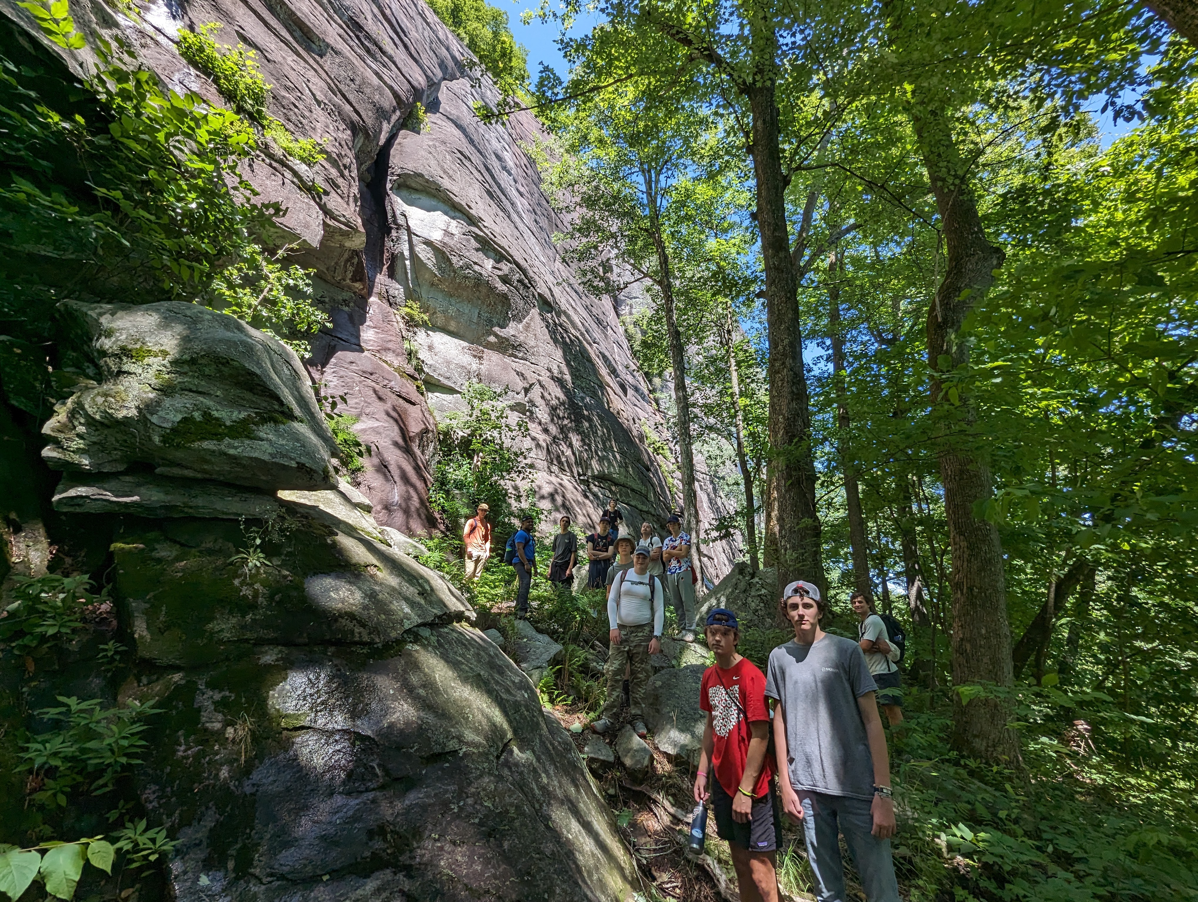 One unique part of the FLINT experience is the “TOG” hike, or the Top of Glass hike, where the whole group goes on a challenging but rewarding trek to the summit of Looking Glass Rock. Looking Glass is a granite rock face in Pisgah National Forest, near Brevard, North Carolina. Its easily recognizable dome stands proudly among the surrounding Blue Ridge Mountains. From the valley floor to the top, it scales almost 4,000 feet of elevation.