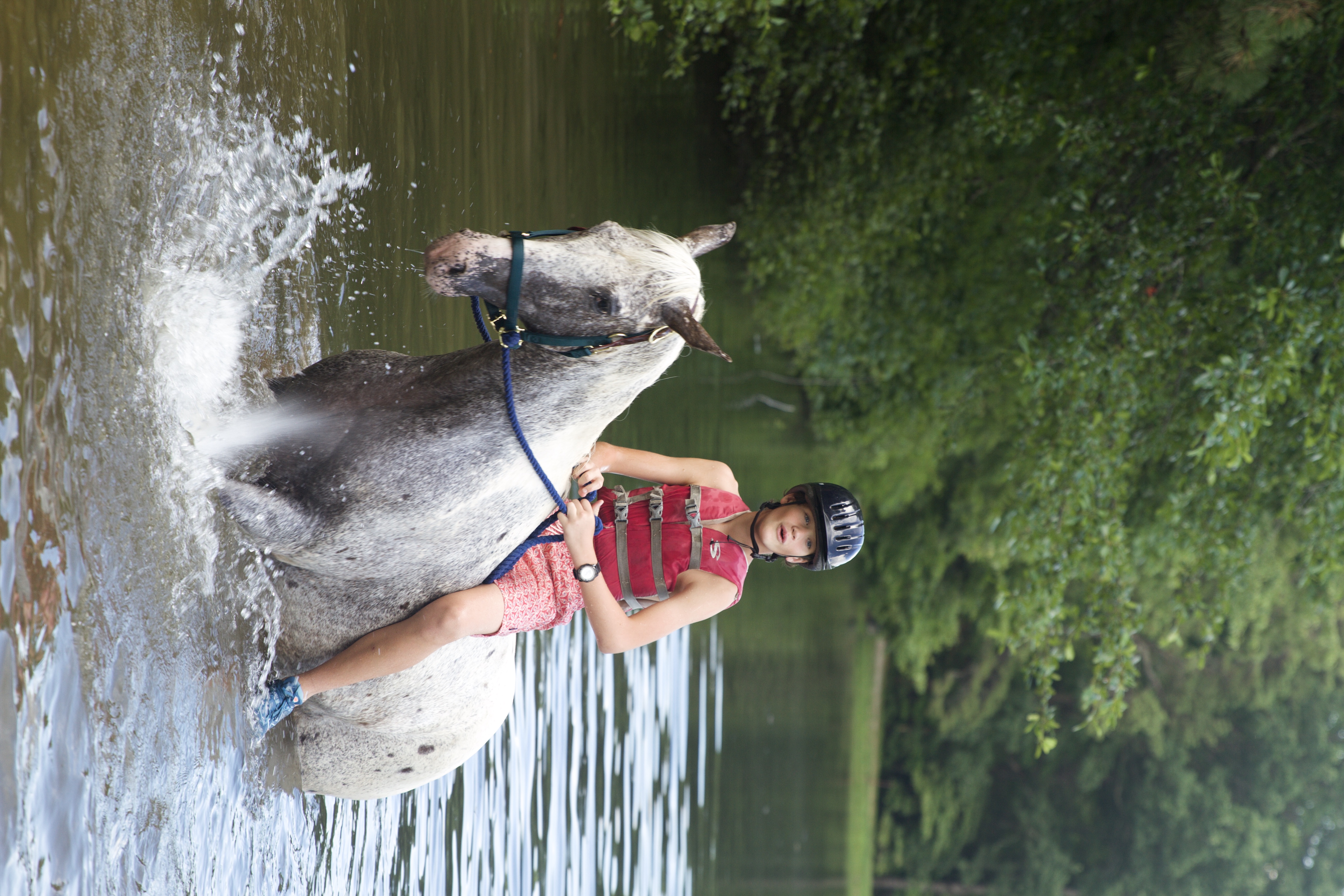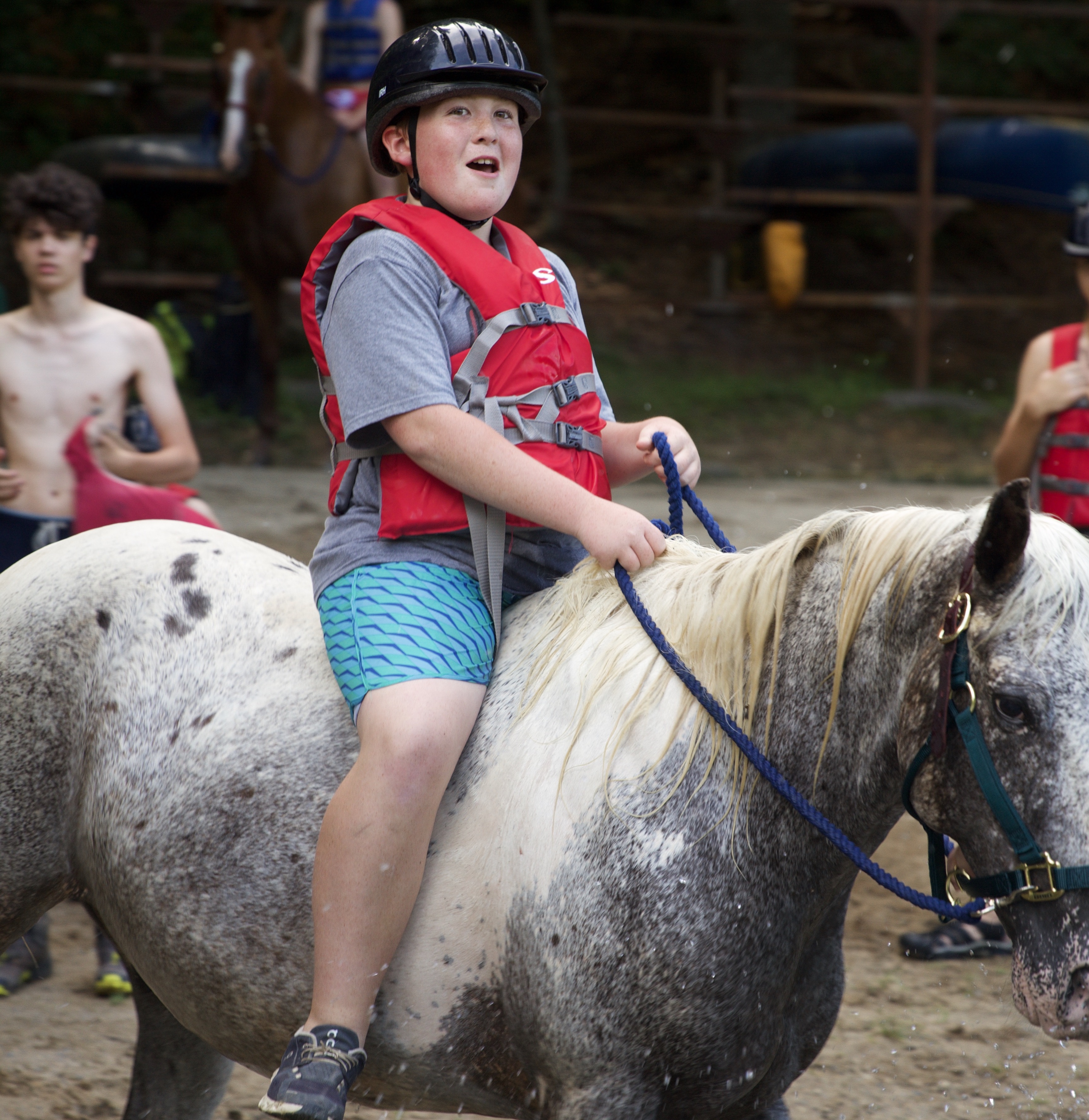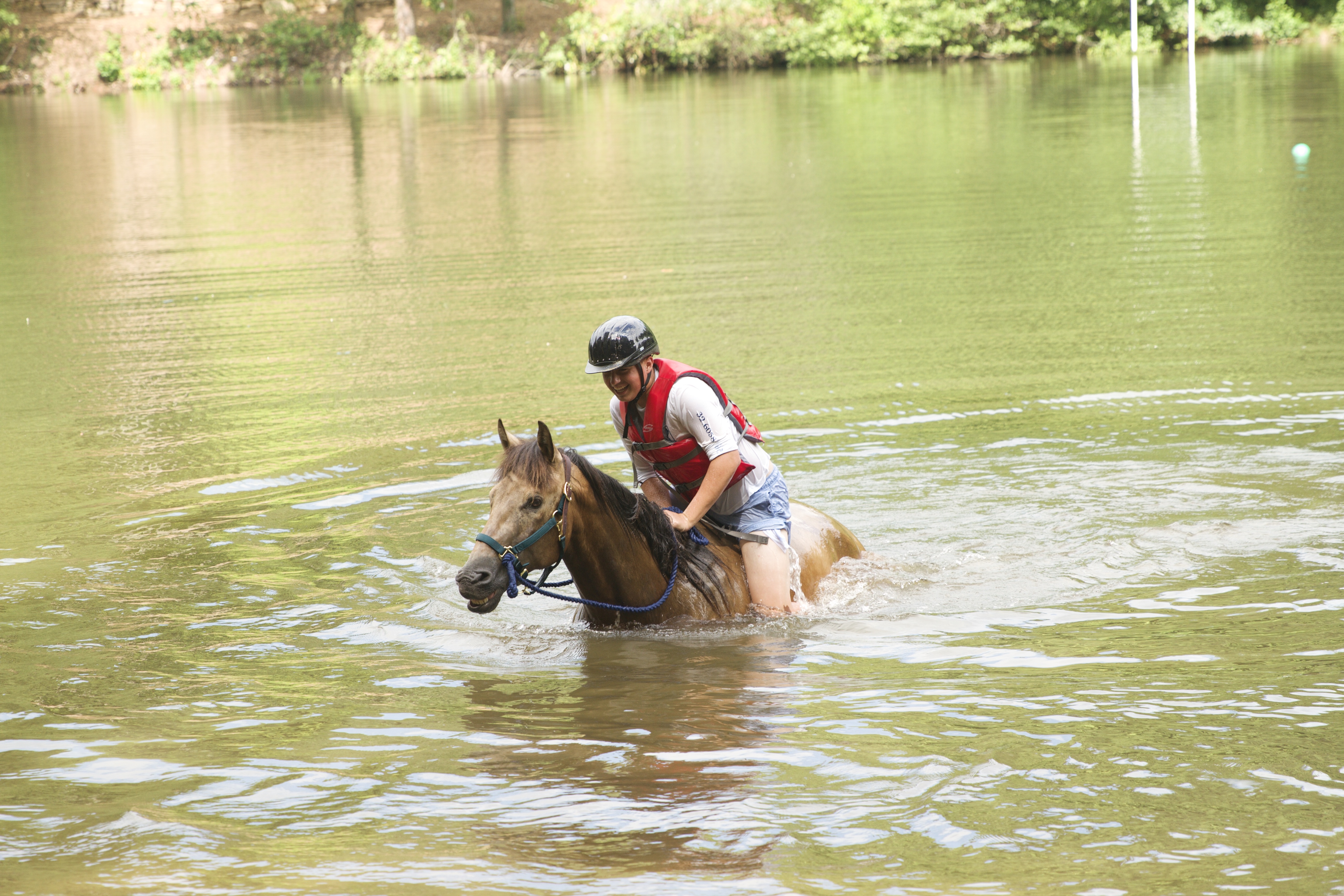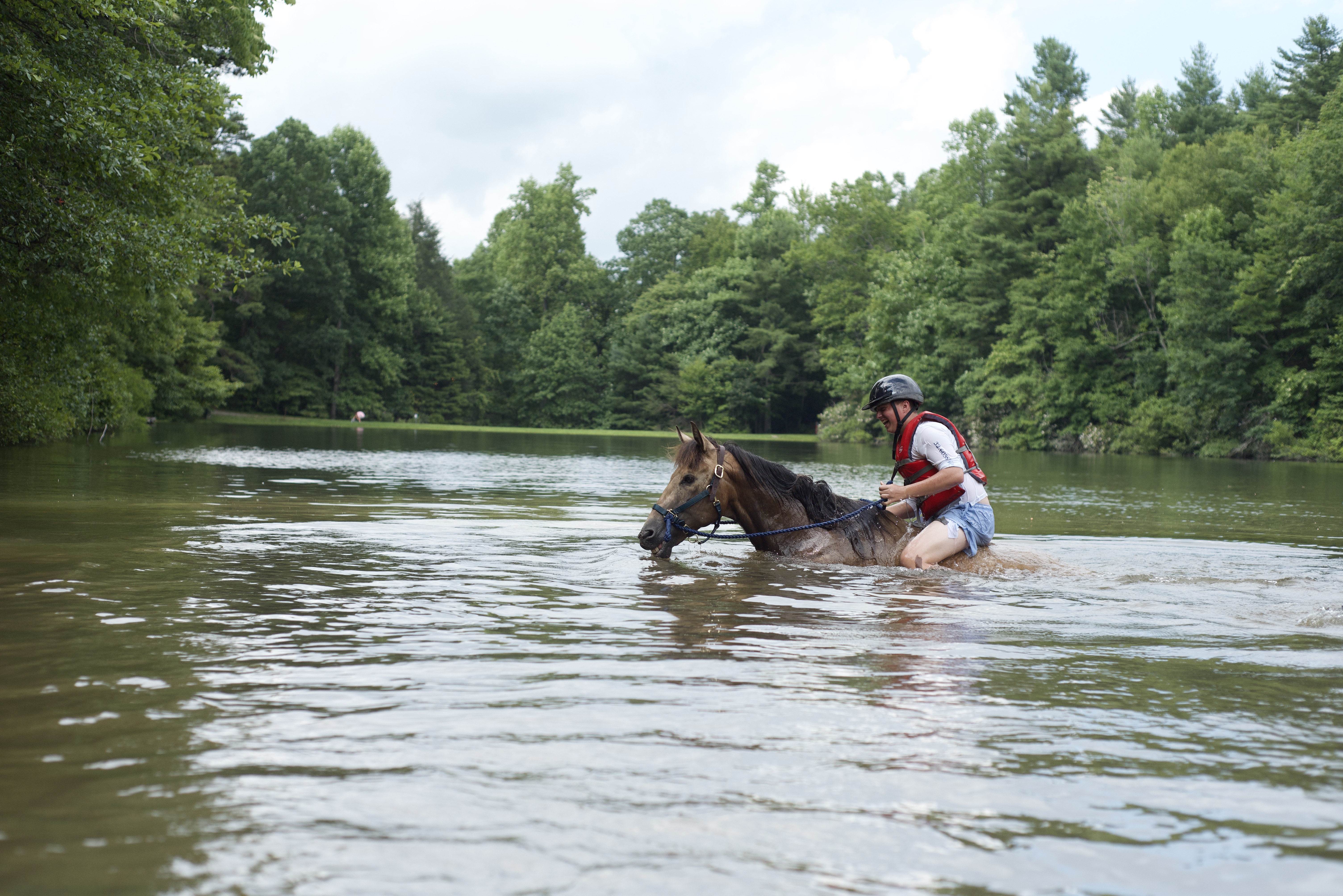 You might not know this, but horses are actually very good swimmers! Their huge lungs allow them to float relatively easily in water, and they can “tread” instinctively with a motion similar to trotting. Some of our horses enjoy splashing and swimming in the lake, so on hot summer days, the horses and boys can both enjoy swimming in the Lower Lake!