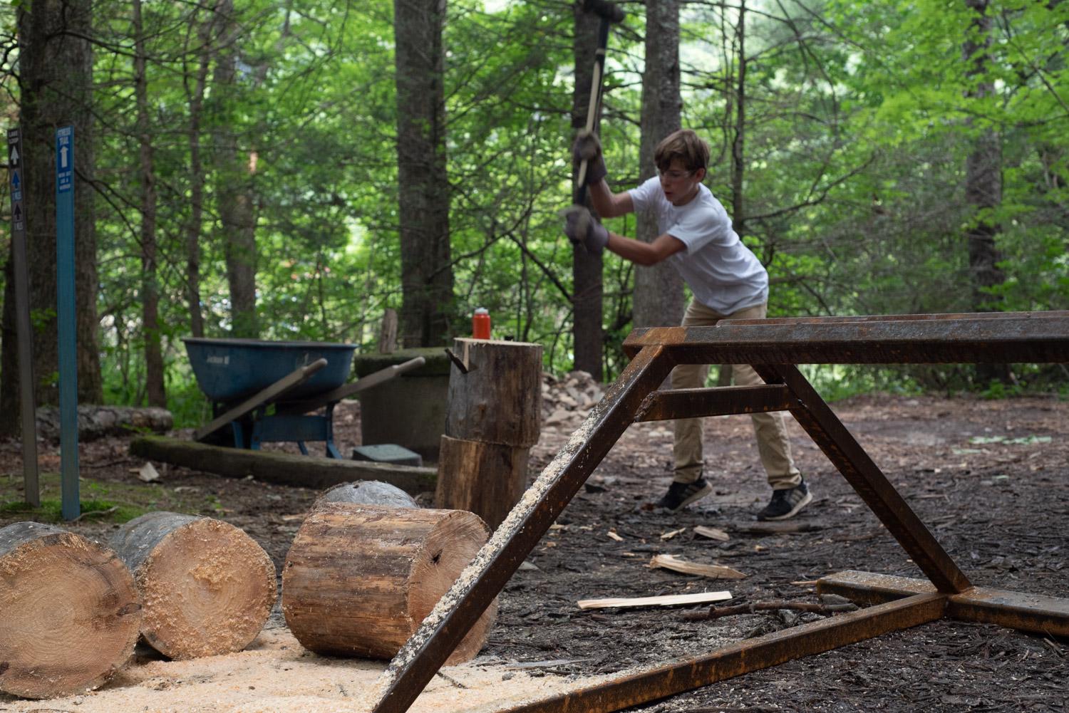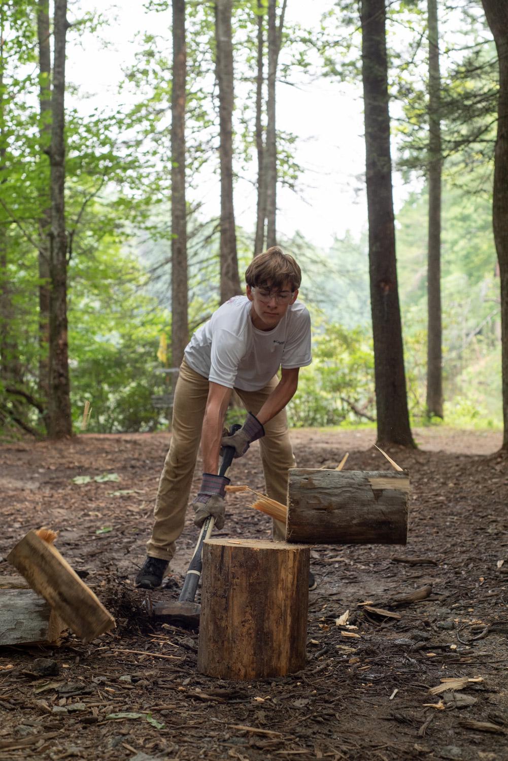For William, the next stages of his Journey continued the following morning. Some parts included a test of endurance, a service component where he chopped wood for future Sunday night Campfires, and a strategy and orienteering challenge where he had to find checkpoints hidden throughout the 900+ acres of camp property before time was up. On top of all this, Journeymen must remain in complete silence throughout each test, giving them time for reflection and listening.