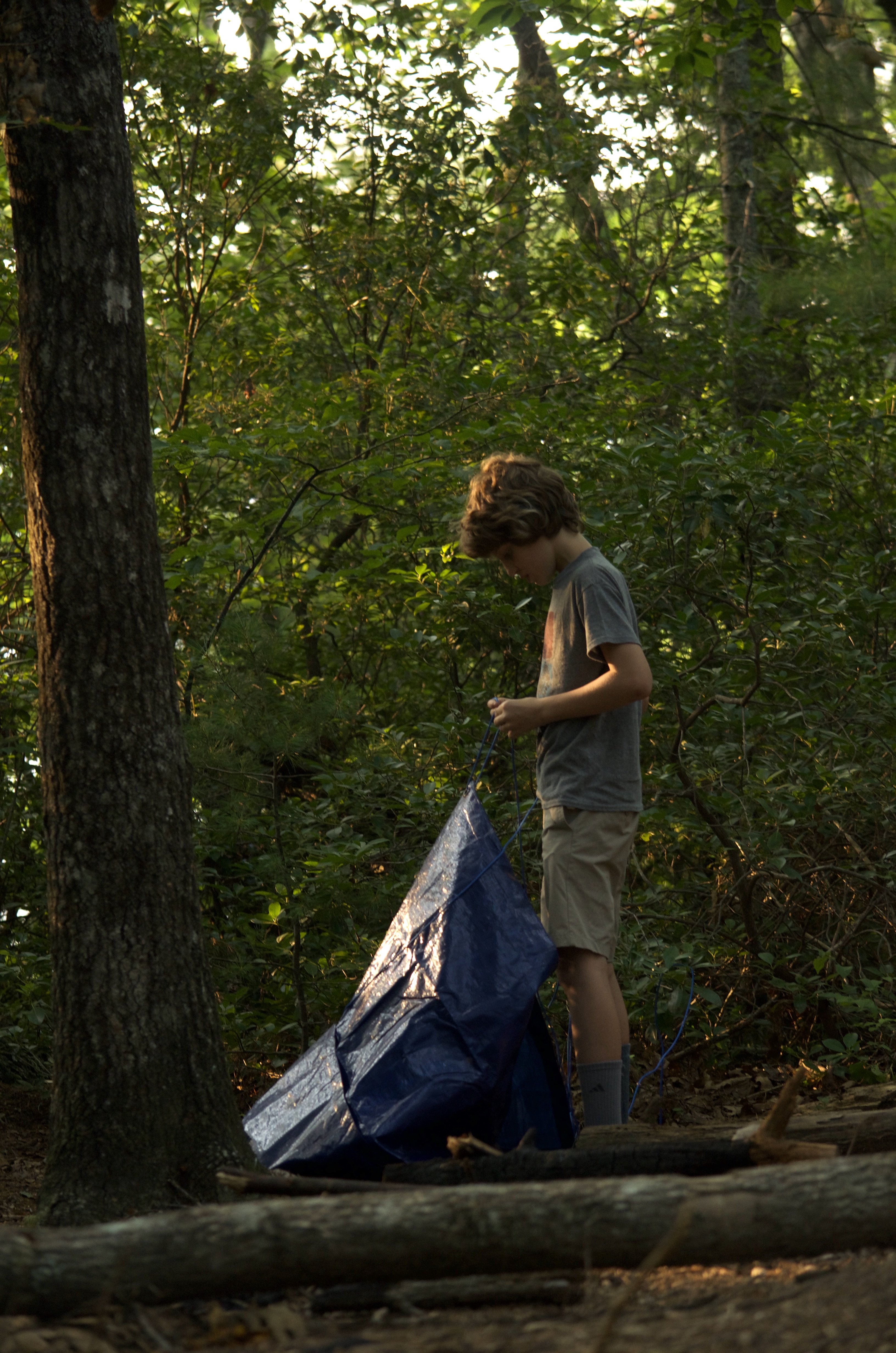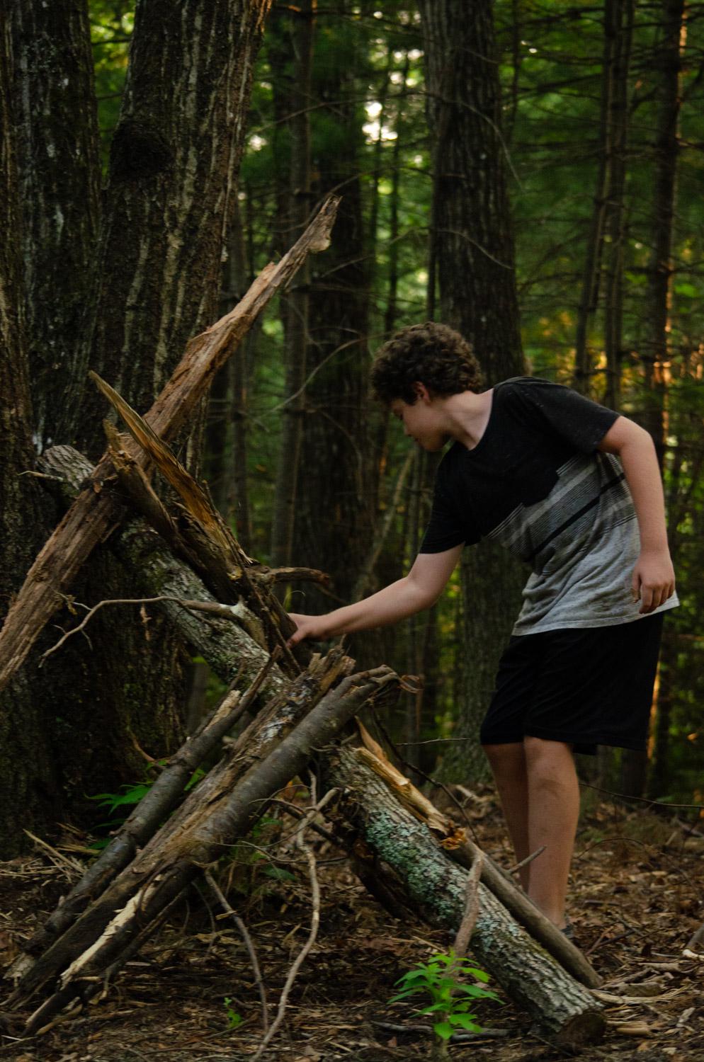 On cabin overnights we sleep in the many existing shelters that are spread out across the 900+ acres of camp. However for the OSC overnight, they wanted to put the outdoor skills they had been learning to use. They practiced setting up tarps, tying knots, and even making shelters out of sticks and other natural materials.