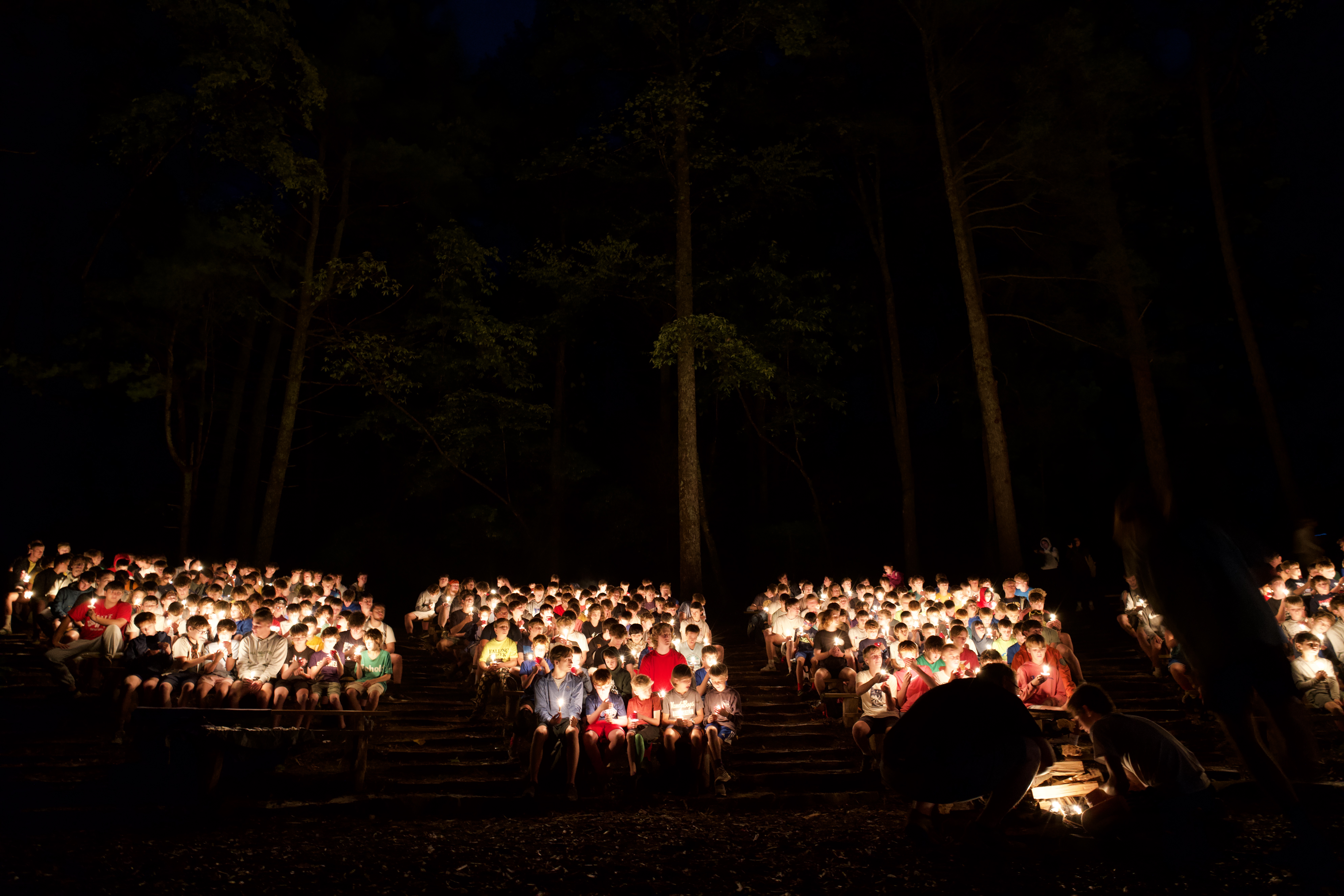 During Campfire, we enjoyed skits, songs, and finally the candle lighting ceremony. The first candle is lit from the central campfire, and spreads from there, person to person. Each boy lights his candle from another, symbolizing the individual light we hold, and how it costs us nothing to share our light with others.