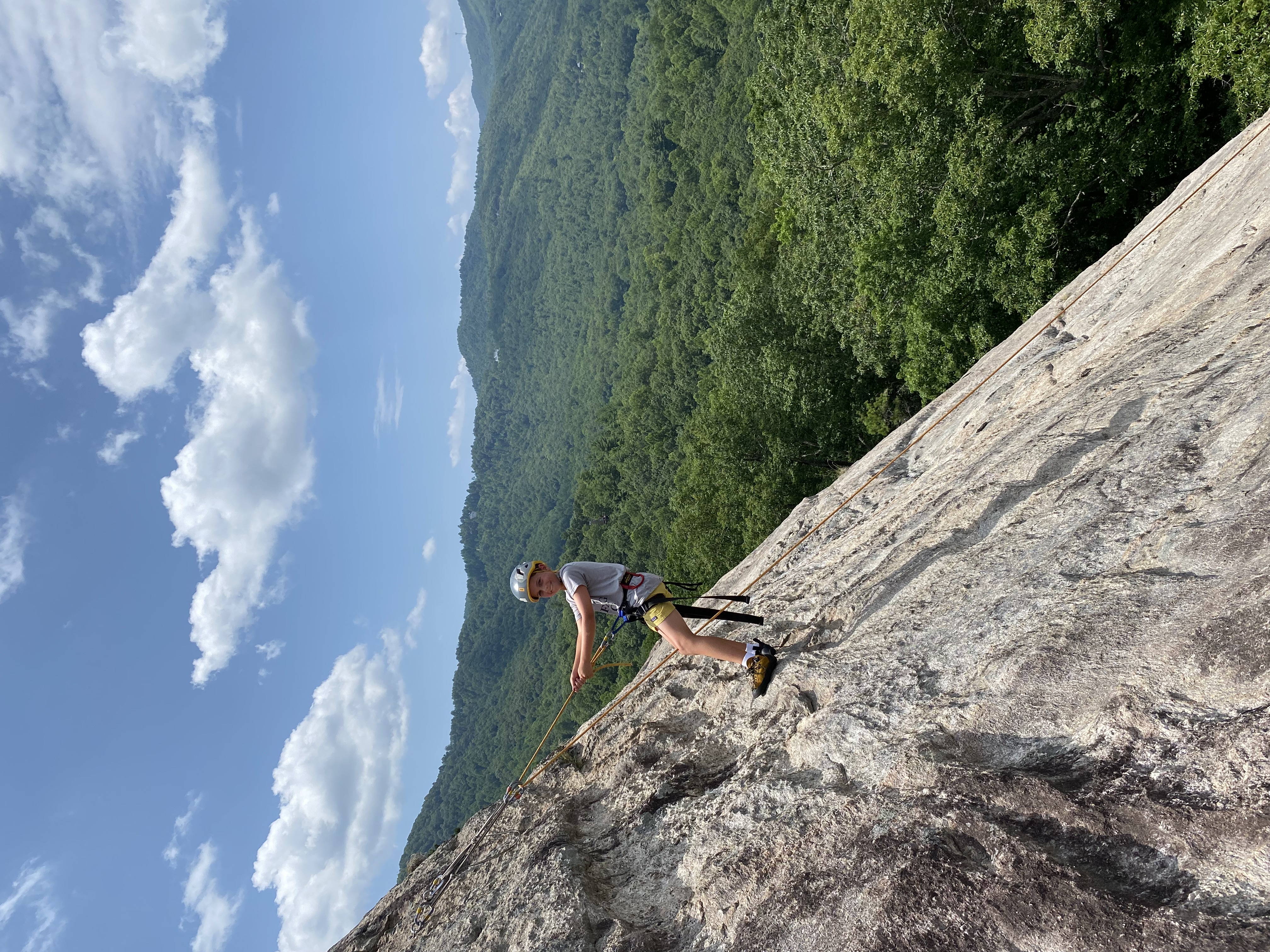 This is the bread and butter of our climbing program! Gilbert’s Rock is Falling Creek’s natural rock face located a short drive from camp, perfect for mastering the basics of rock climbing before moving on to steeper or more technical climbs. At 200 feet high, the views into the surrounding Henderson County valley are a great reward!