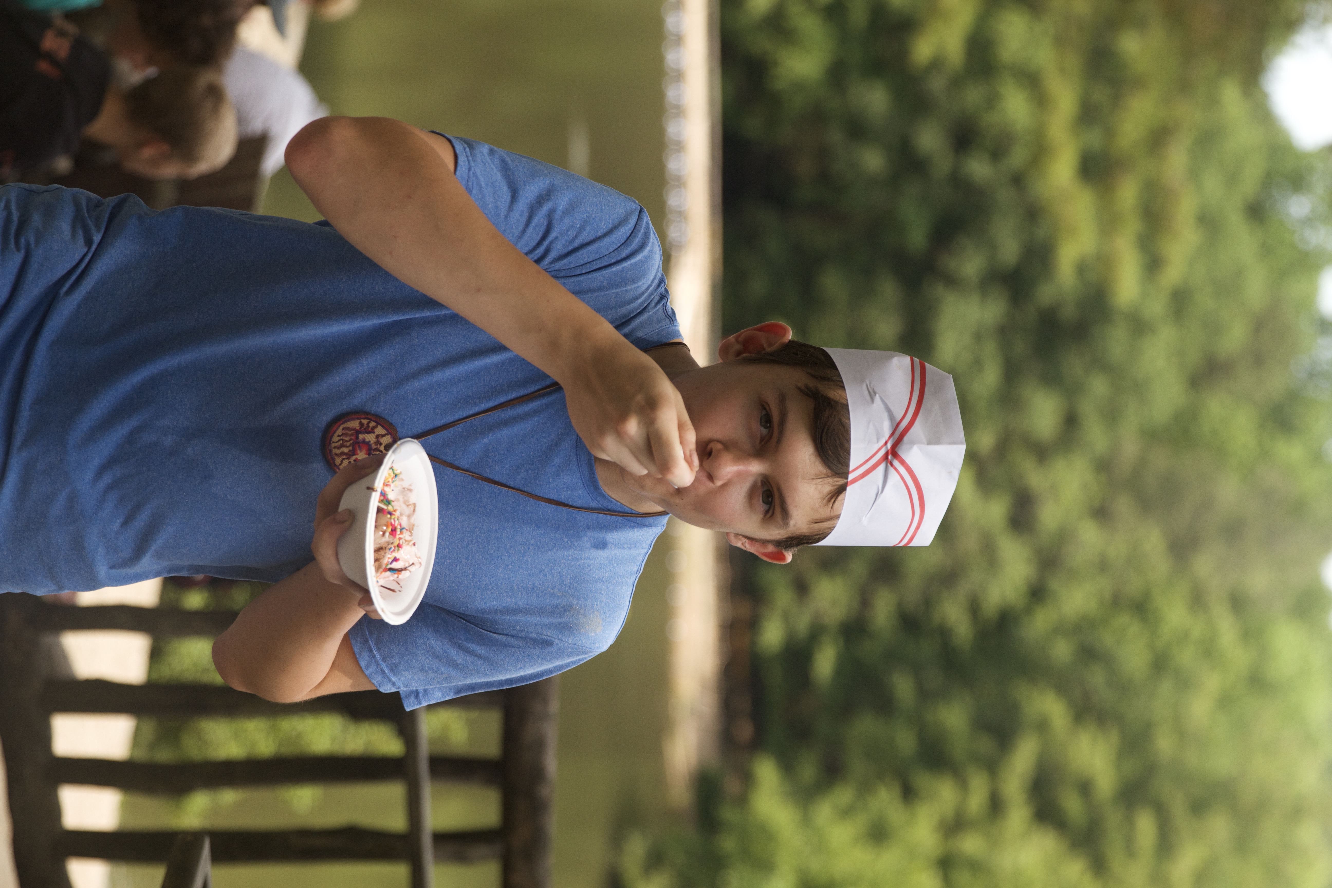 We start with an extra hour of sleep, and extra time to clean the cabins following breakfast. Cabin inspection includes a trunk inspection on Sundays, and with the cleanest cabins being called first for Ice Cream Sundaes, there’s a lot of motivation!