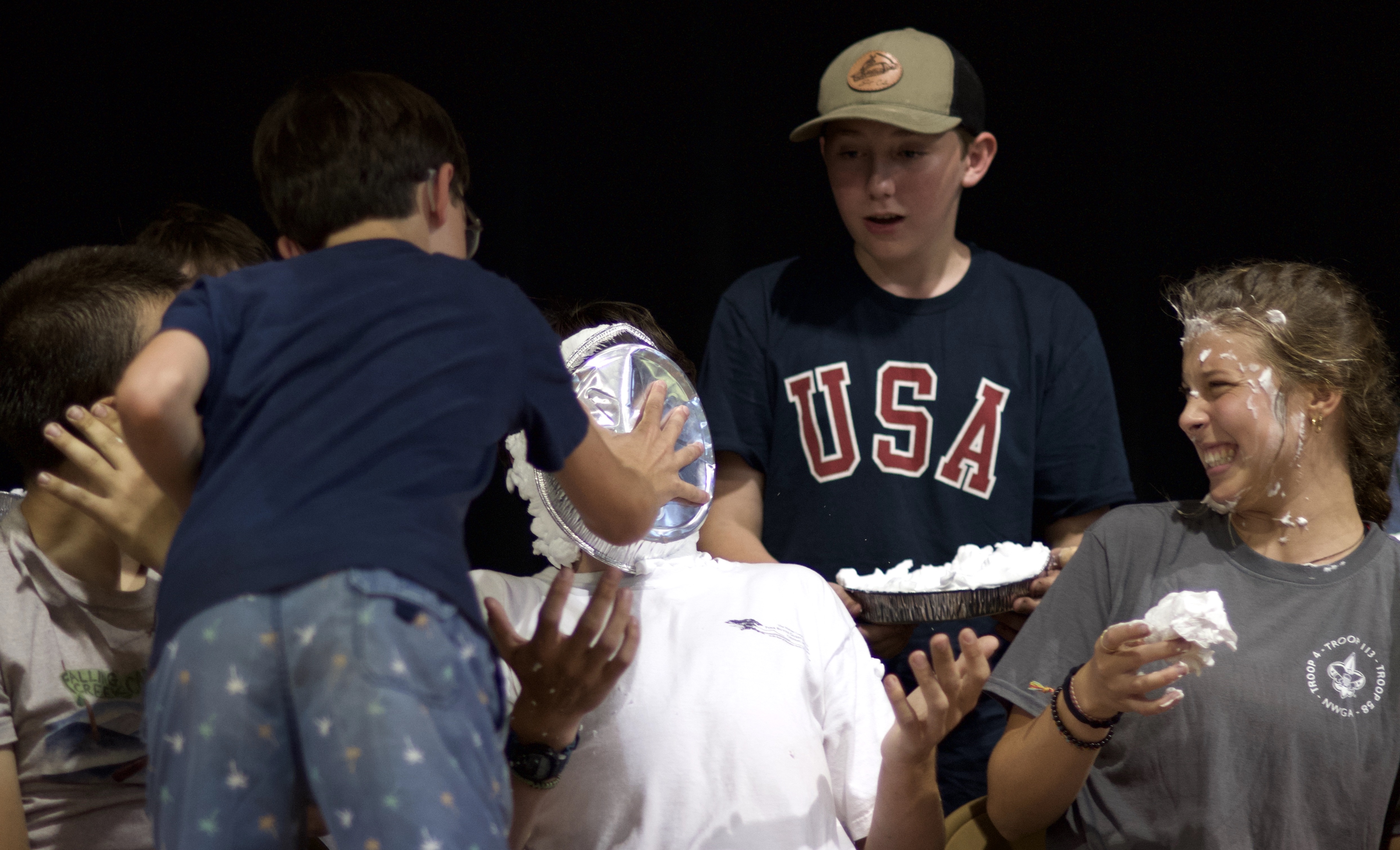 Meanwhile, the Tsuga and Sorrel cabins were playing Wild N Out, a TV game show style event where counselors were the ones doing the challenges, and campers could pie them in the face if they made mistakes!