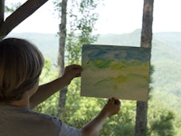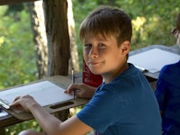 En Plein Air is French for “in the open air”, and this kind of painting is exactly what our arts & crafts campers got to do yesterday. They took some watercolors up to the gazebo at the overlook, and enjoyed painting the view while immersed in a beautiful outdoor setting.