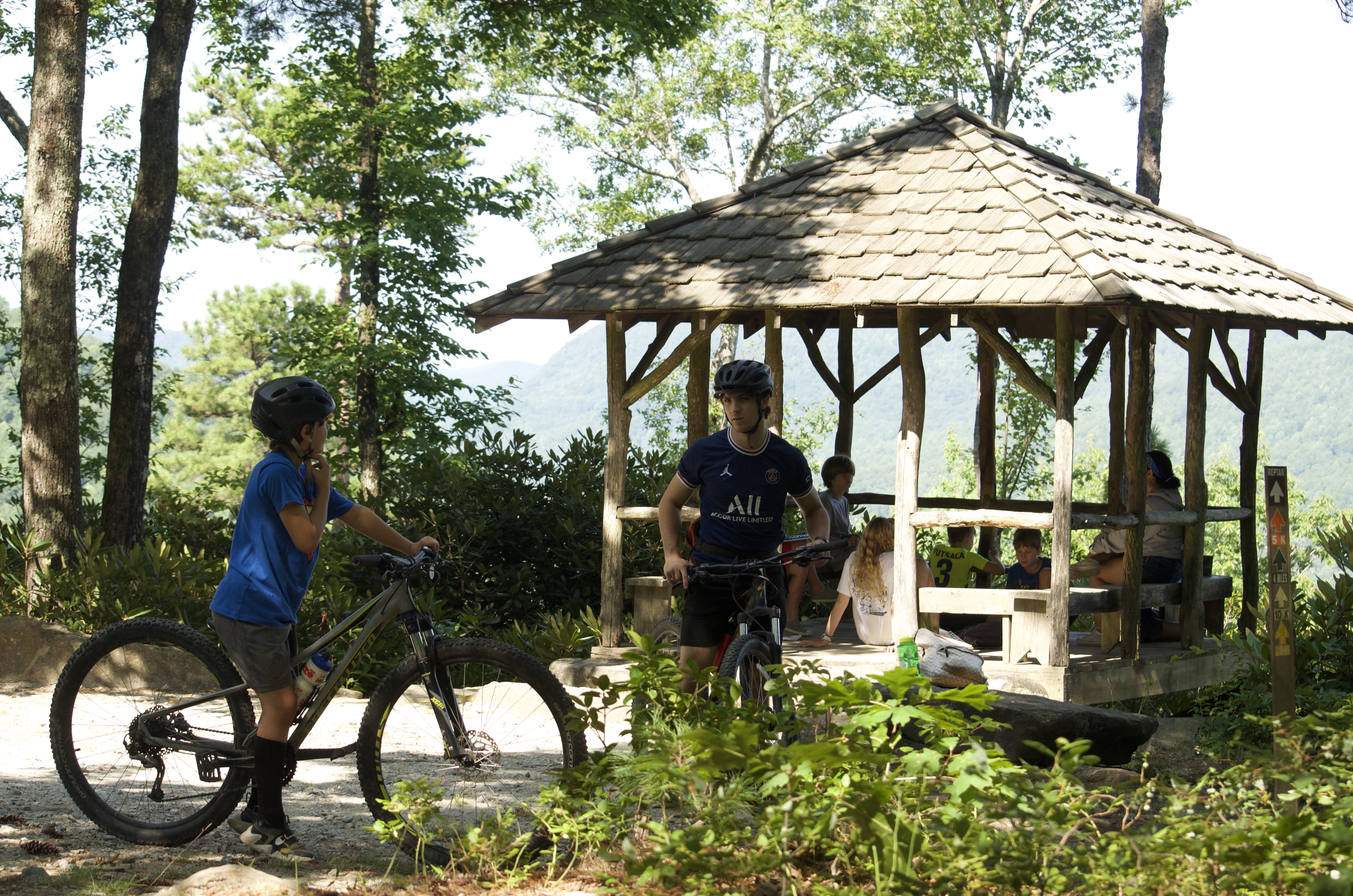 The painters weren’t the only ones to enjoy the overlook views yesterday - there was also a group of mountain bikers out practicing the basics and going on a camp ride.