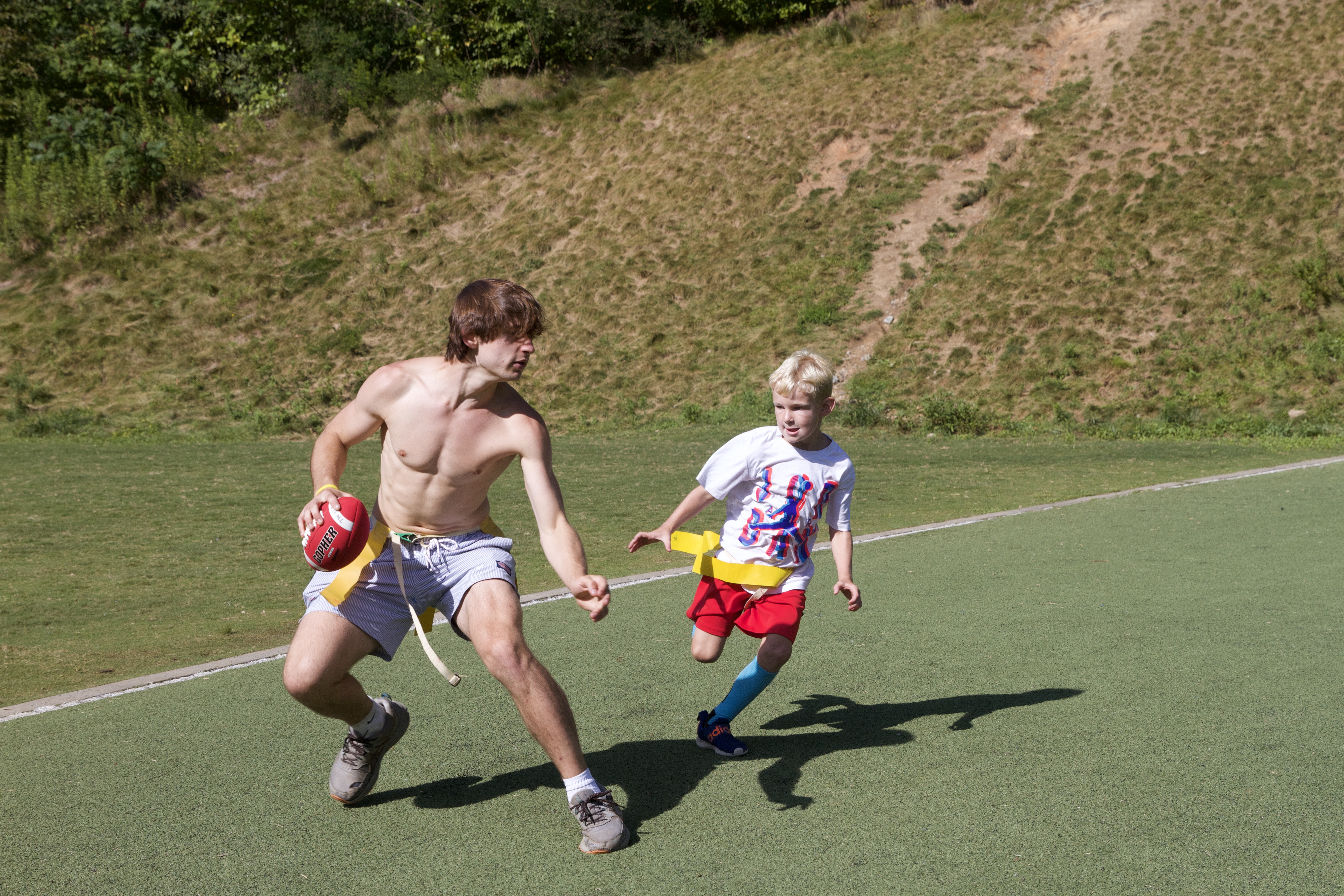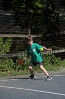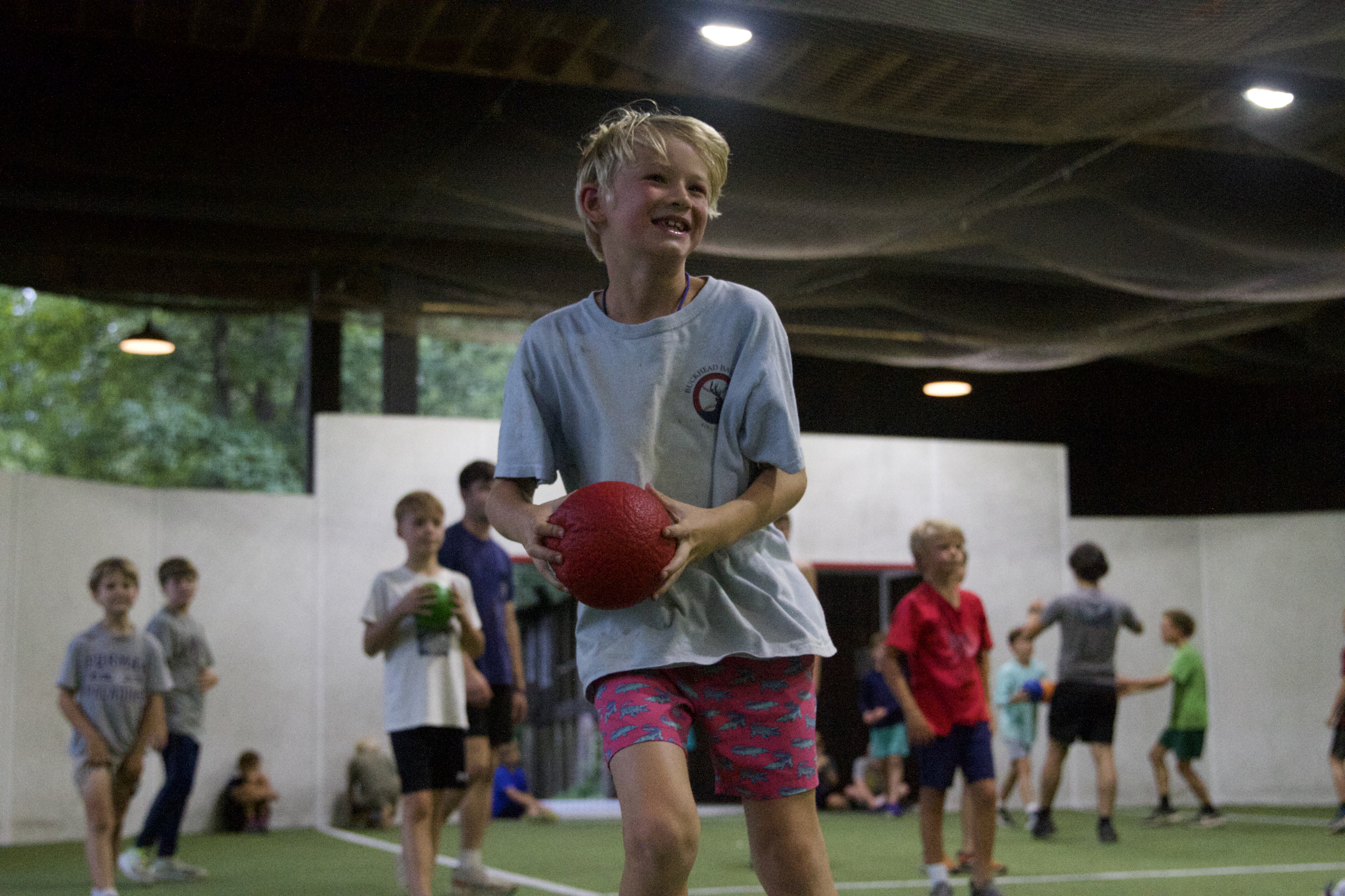 Robinia and Betula, our two oldest groups, headed to the gym to play rounds of yoshi ball and dodgeball. Yoshi ball was played on the turf field, while dodgeball was in the “thunder dungeon,” or the indoor soccer field. If you’ve never played Yoshi before, this is a game where you try to get all your players to the other side’s safe zone, without getting your flag belt pulled by the other team! If you do, a teammate has to run over to save you. Halfway through the evening, the boys switched so that everyone could have a chance to play both games.