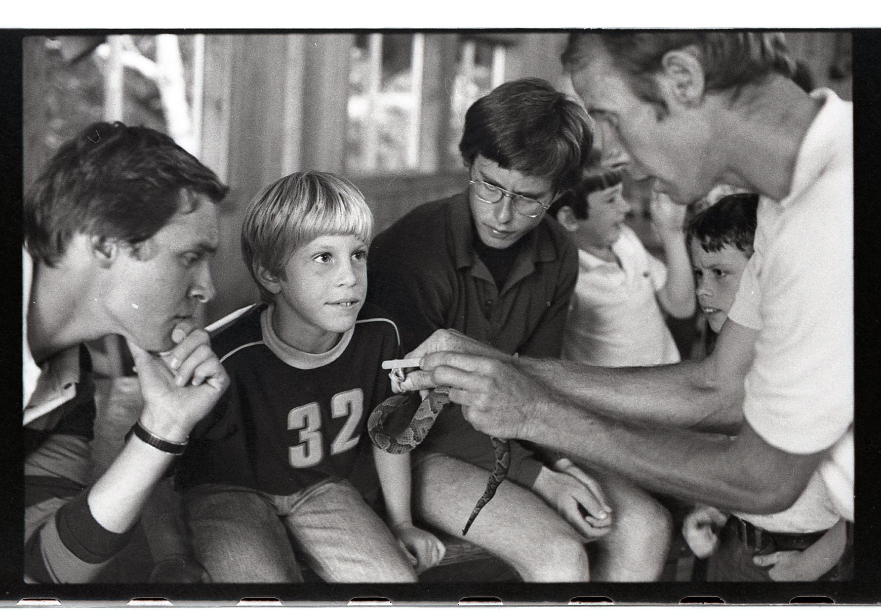 At the time, tennis, like nature, was a long-standing, almost-cliche’ activity at summer camp. Though I didn’t have any previous teaching experience, I knew enough to fool the director and define myself as a teacher of something. Chief and I had a mutual interest in snakes. Aside from teaching tennis, I helped him with the snake programs, joined the hiking staff, and eventually became head of that department.