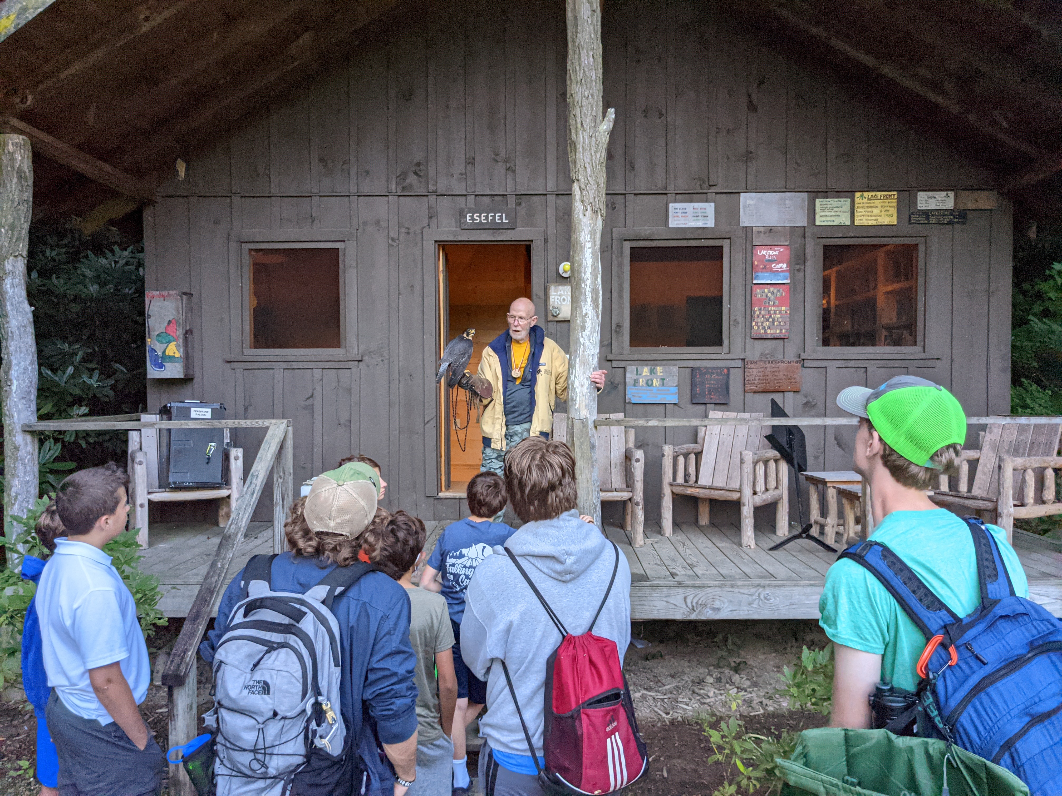 SFL: My name has been associated with many things over the years: the Top of Glass (TOG) trip, the “Nose Bivvy,” night hikes with the nature program, truck/bus driver, “Riki-Tikki-Tavi,” “head of homesickness,” trip calendars on the wall, recycling, and trivia bulletin boards. Inventor of Longenecker Lumps? Creator of WEMA? Father of Rock Climbing Programs for summer camps? Developer of the Falconers of Falling Creek Camp’ program? Guilty as charged, sir! Depending on the decade, campers may only know me as some old guy who has something to do with educational bird/snake programs. Other alumni many know I had a bit to do with bringing rock climbing and mountain biking to Falling Creek. I’ve held many roles at camp, and attempting to list them all soon becomes unmanageable.
