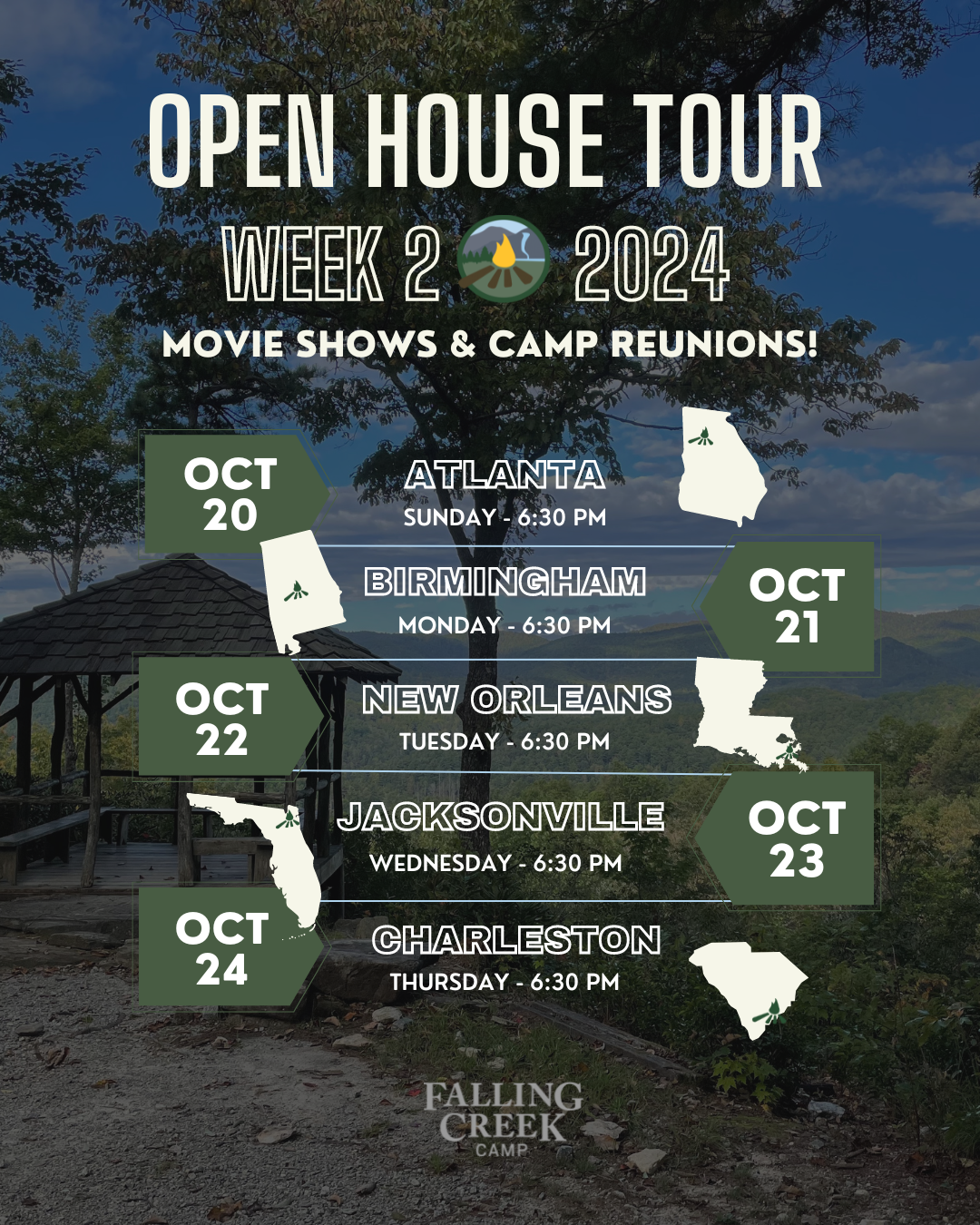 This Fall, Yates is traveling from October through November for our Camp Reunion and Movie Shows tour. His stops this week spanned 5 states in 5 days, stopping in Atlanta, Birmingham, New Orleans, Jacksonville, and Charleston.