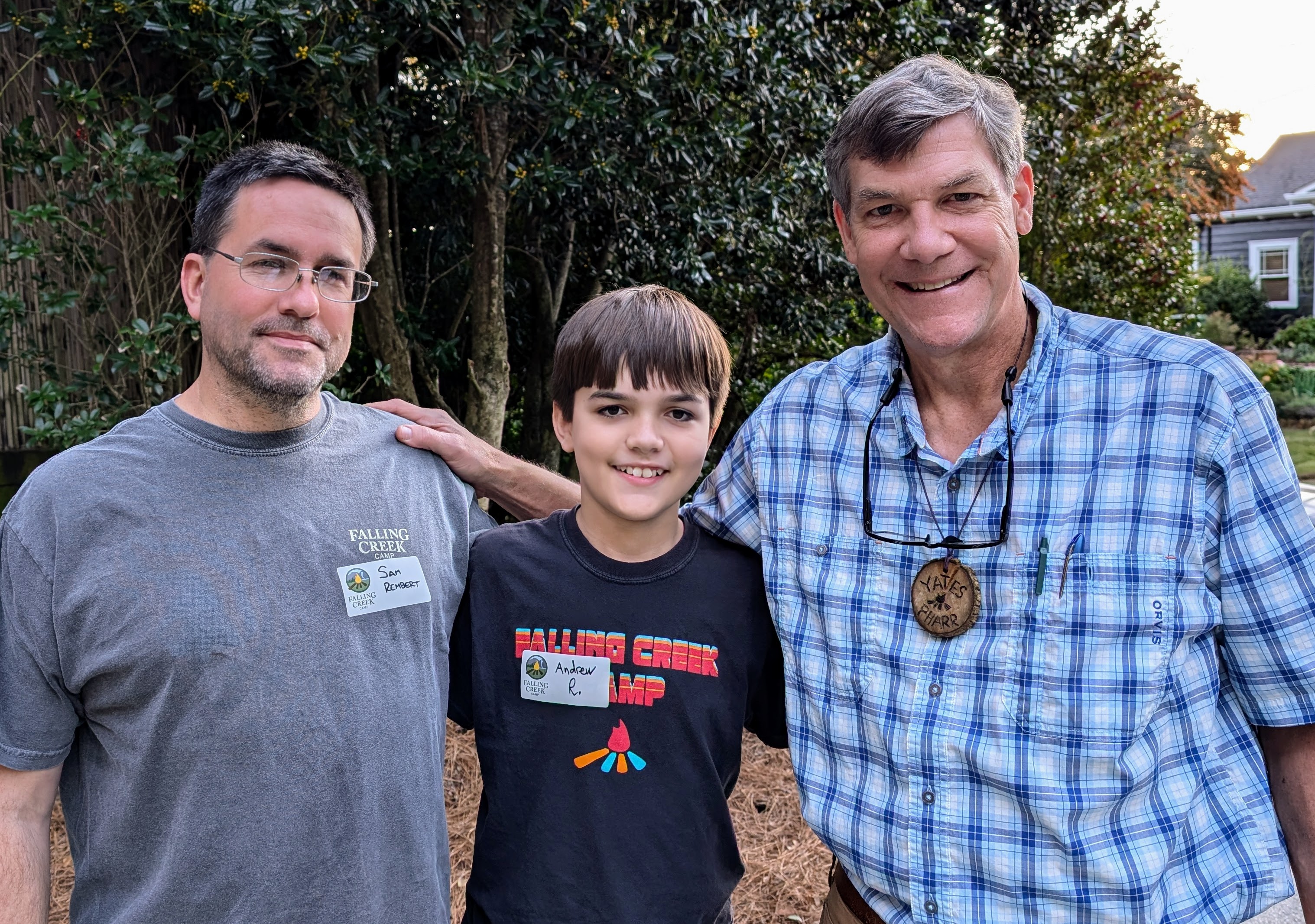 In the center photo below, Yates is pictured with Dr. Steve (camp doctor ‘10-’19, ‘21-’25) and Morgan Williams (camper ‘85-’89). Steve Feingold and his family are returning for their 15th summer to serve as the camp physician for a week. Morgan Williams was a camper at FCC for 5 summers, and he brought his son Charles (camper ‘21-’25), who will be returning to FCC for his 5th summer.