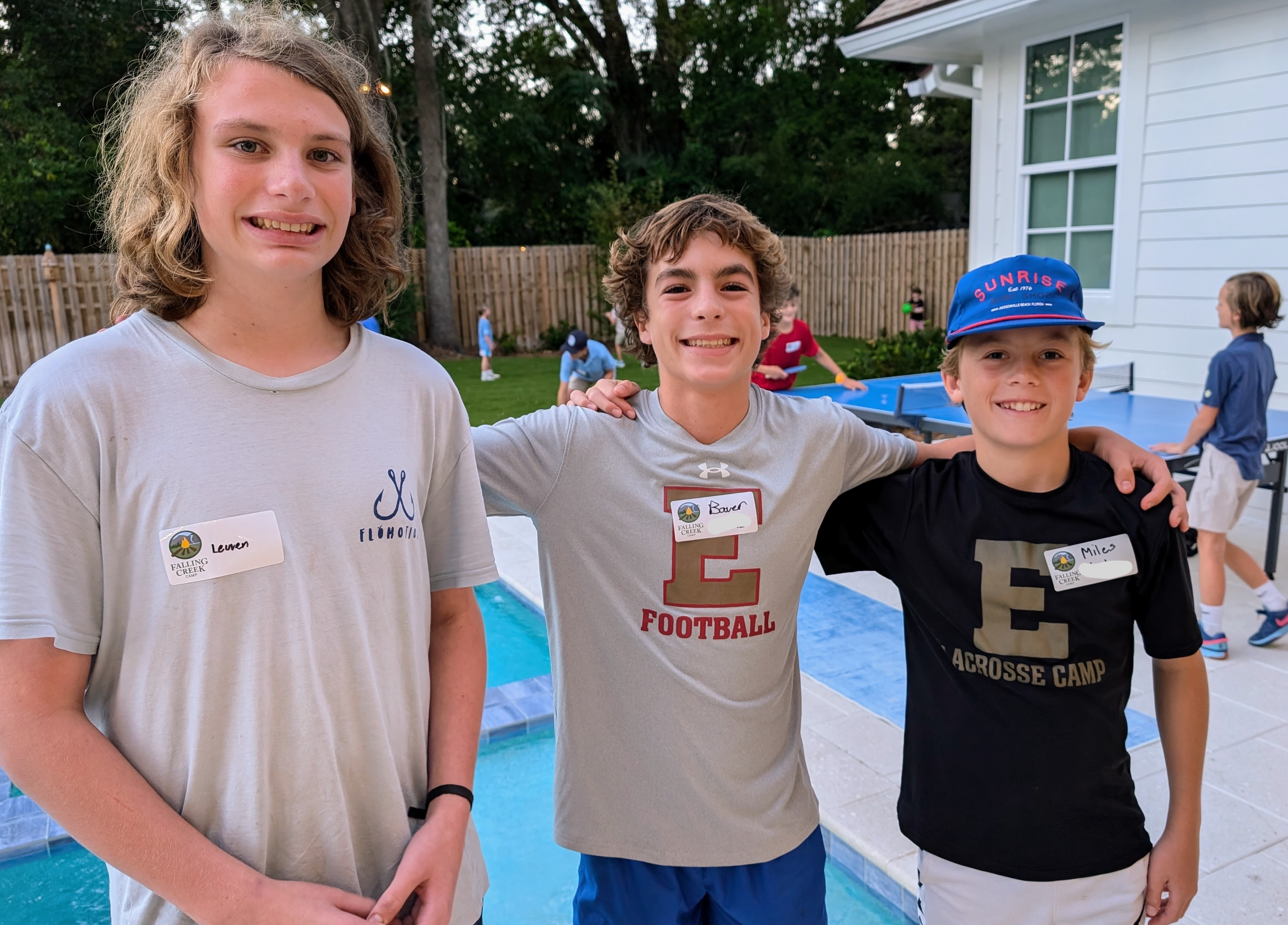 In the center photo below, we are excited that Grayson V (camper ‘24-’25) and Will M (camper ‘19, ‘21-’25) are both returning to the FCC Main Camp session in 2025. Will is going to be part of the FLINT (Forging Leaders INTentionally) leadership program!