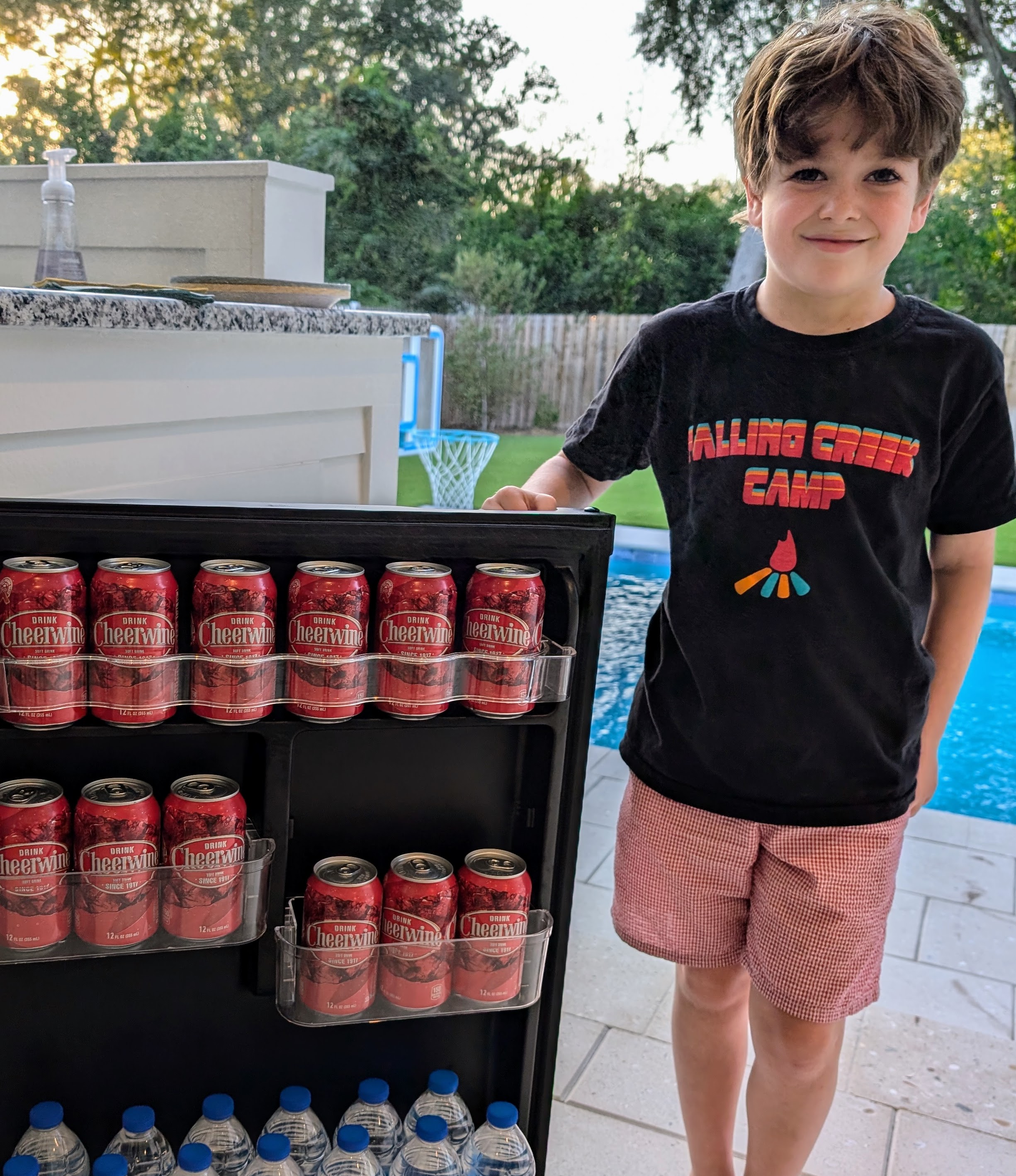 Below left, Gideon T is showing off the fridge full of Cheerwine, an FCC favorite served at the Sunday cookout supper.