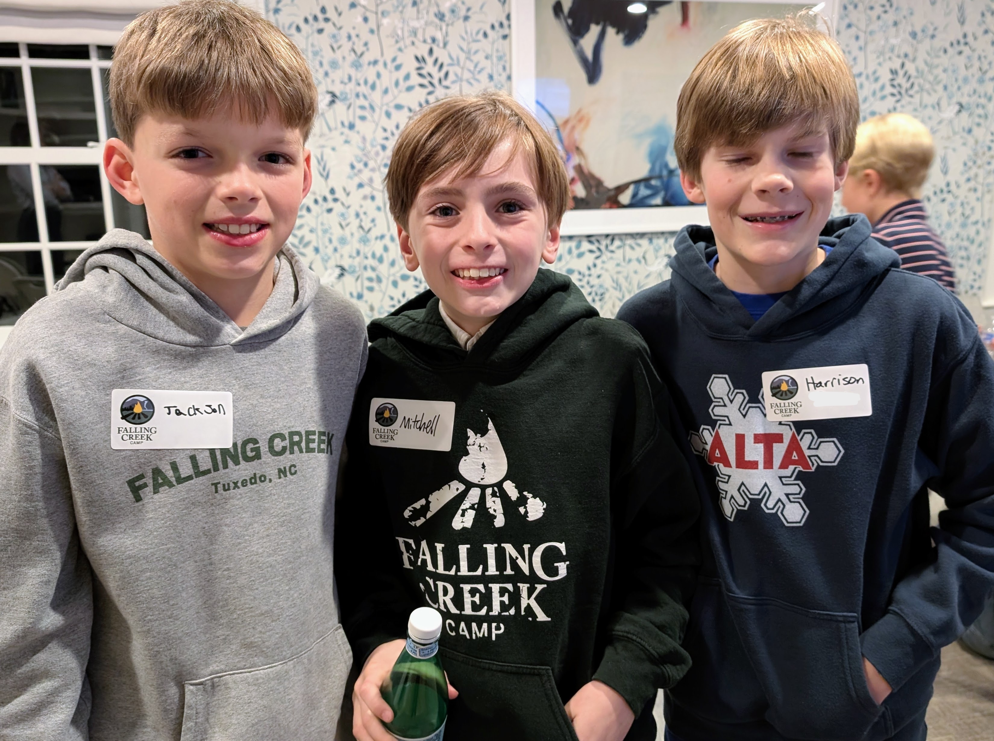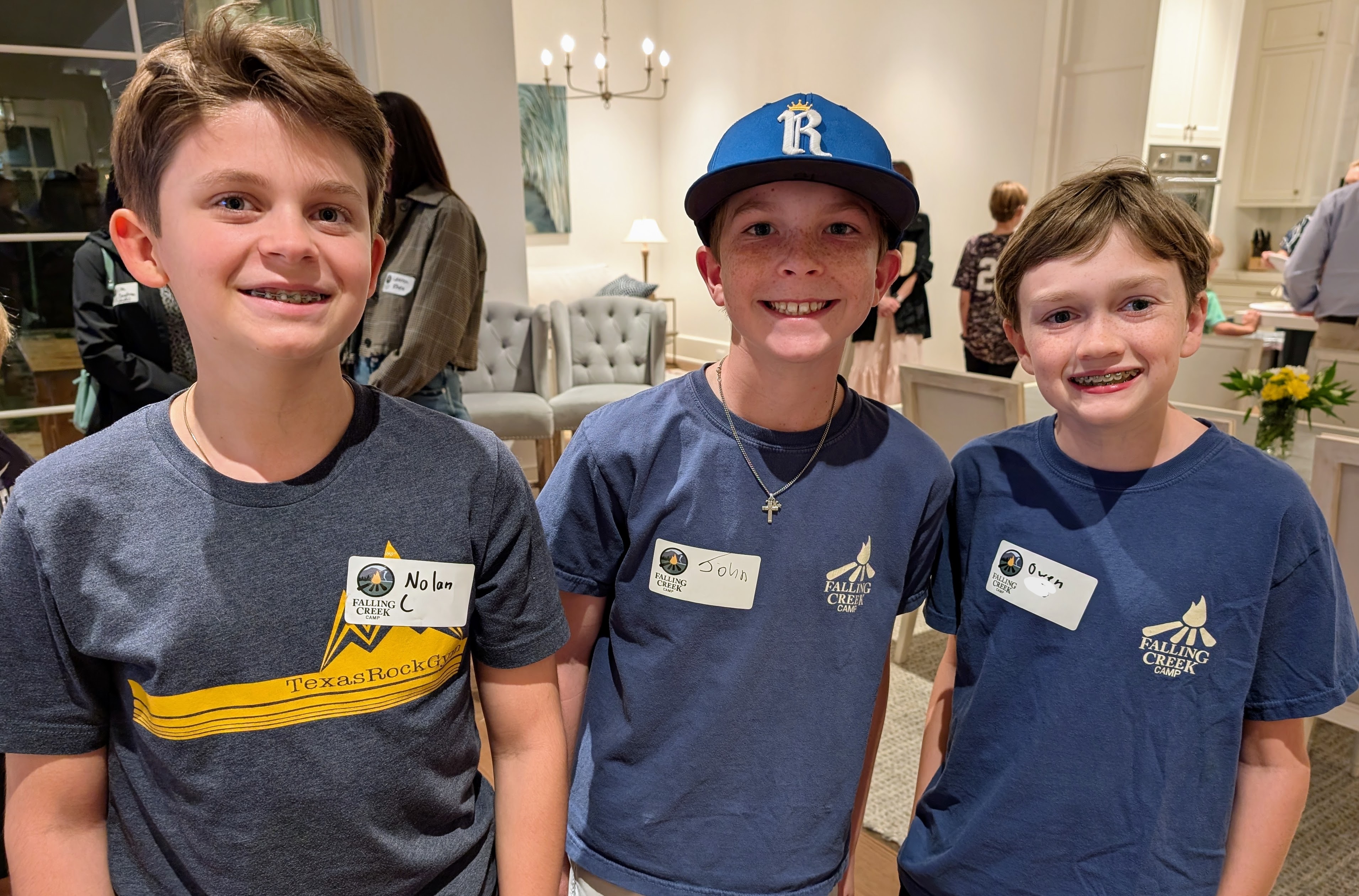 In the center photo below, camp friends Jackson B (camper ‘23-’25), Mitchell S (camper ‘22-’25), and Harrison B (camper ‘21-’25) enjoyed the opportunity to watch the new Falling Creek video. We remain excited that they all will be returning to camp this coming summer.
