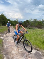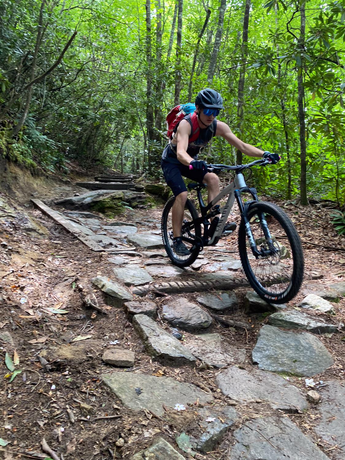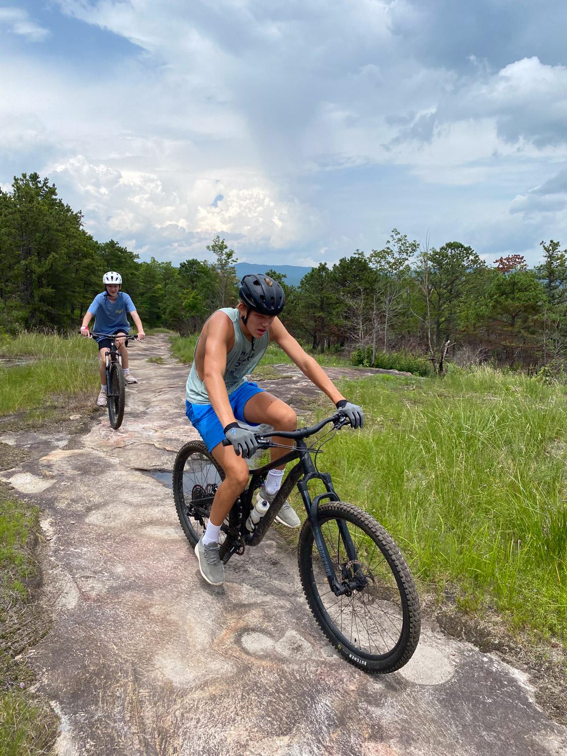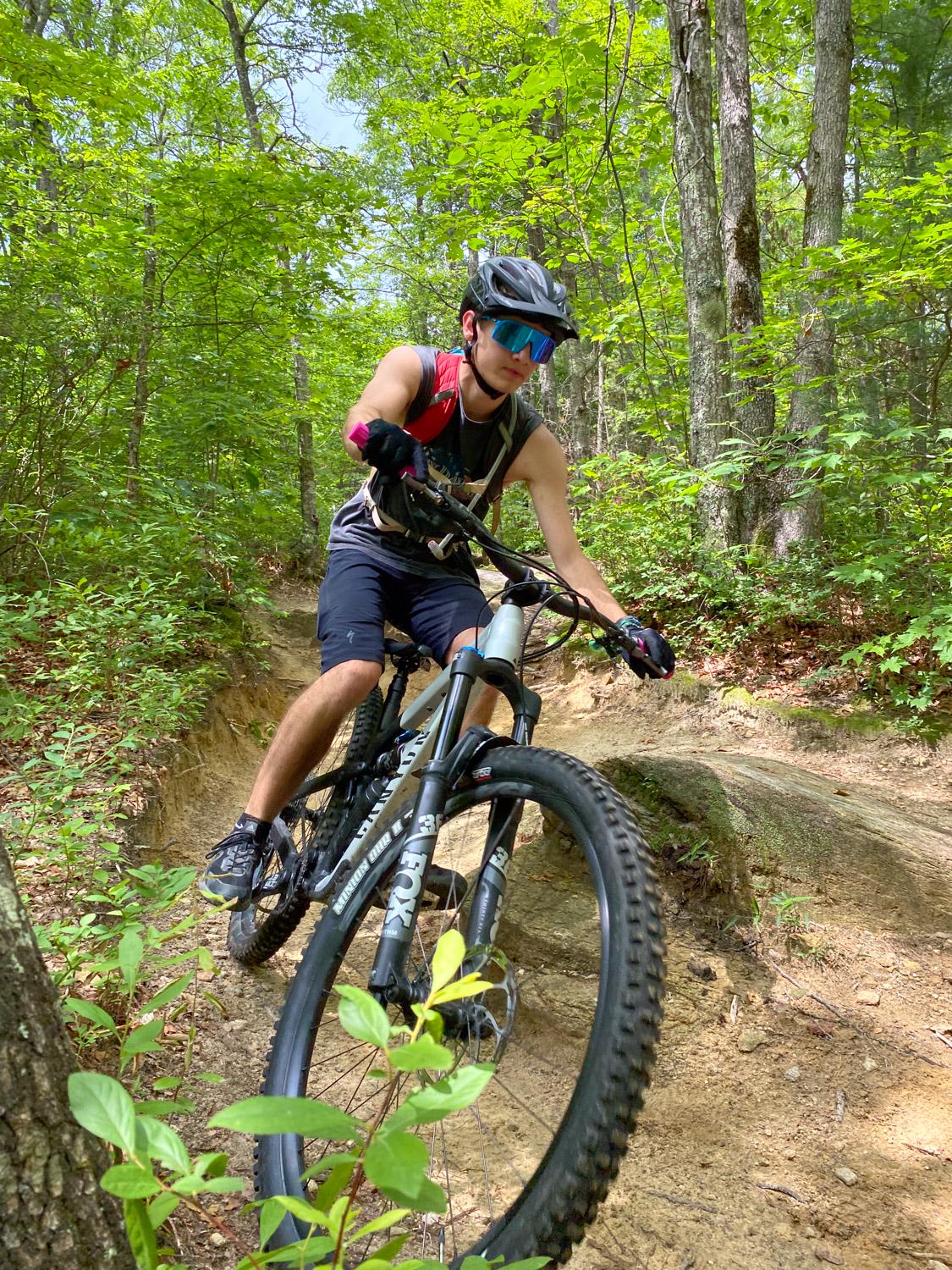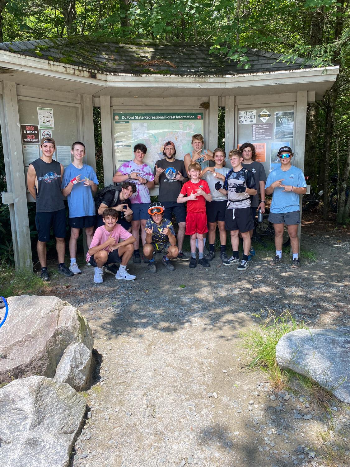 “A trip that I will never forget was my Dupont 2 from Main Camp in 2023. This was our first advanced ride we had taken during this session, and the trails we rode featured difficult and drawn-out climbing, leading into fast and technical downhills. Alexander Carroll and I, along with 12 boys, rode around 12 miles in a single day in Dupont State Forest, through the Burnt Mountain Loop, the Quarry Loop, up Cedar Rock, and down Big Rock Trail.