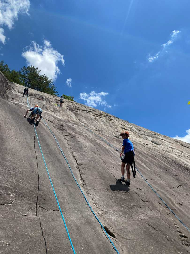 We climbed Gilbert’s Rock with some of our campers and it was awesome! We have multiple day trips to Gilbert’s Rock during camp sessions led by our experienced team of climbers. Gilbert’s is Falling Creek’s private rock face, located nearby in Flat Rock, just outside Hendersonville, NC.