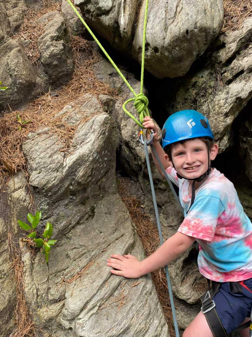 Lincoln S. from Cabin 6, is only 9 years old and the youngest venturer on this climbing trip. He said his favorite part was definitely the climbing aspect. He enjoyed the night climb the most, even though it was extremely challenging and he got a few cuts and blisters. We agreed that this shows his inner strength and resilience.