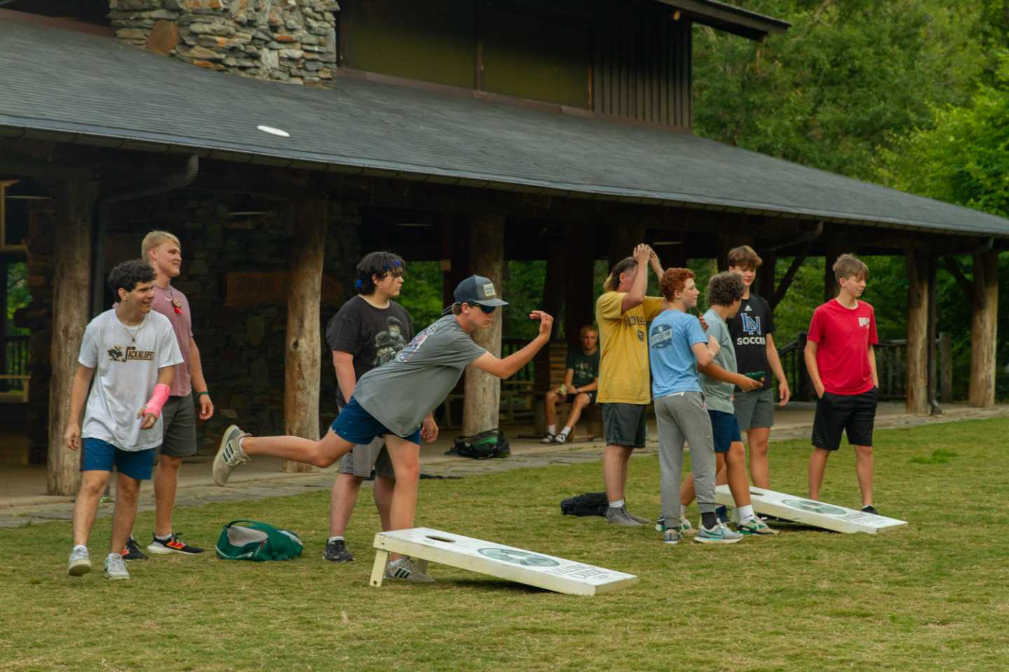Each player takes a turn throwing a beanbag for their team. Every player must throw one before someone can throw again. The cabin that has the most points wins for their team.