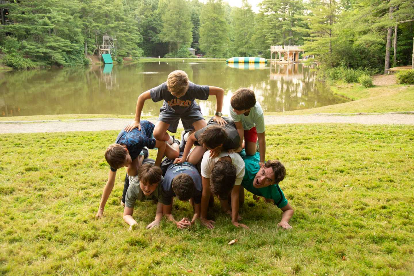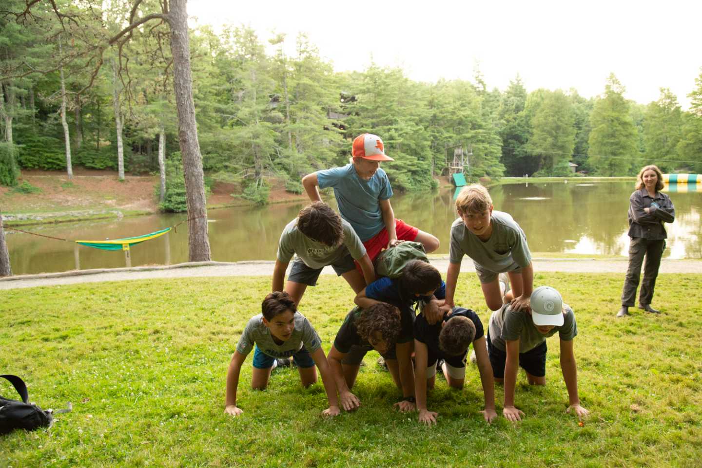 Of course, it is best when you combine the two, here we have a mental and physical challenge. Team Pyramid involves creating a human pyramid that involves every single teammate in your cabin. The quickest cabin to build their pyramid wins!