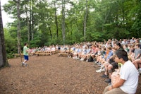 Michael Mullen, a Falling Creek counselor, spoke about how a small act of kindness can be seen as a big act of love. Michael shared a personal story from when he was a camper back in the day. He spoke about how he was nervous to return to camp since his closest friend, Everett Norton was not returning that year.