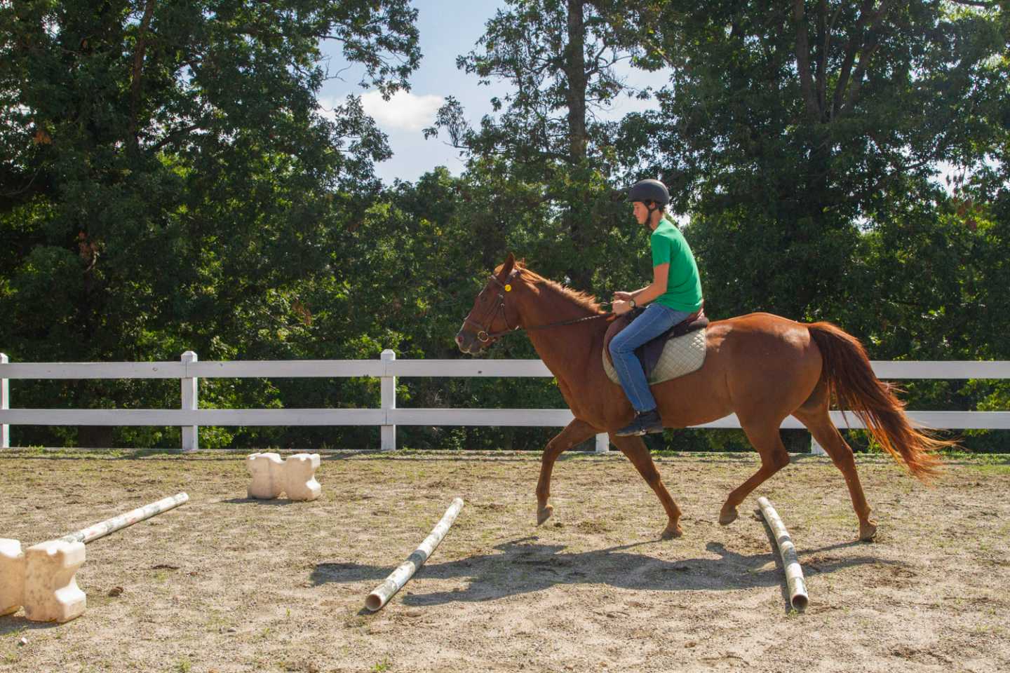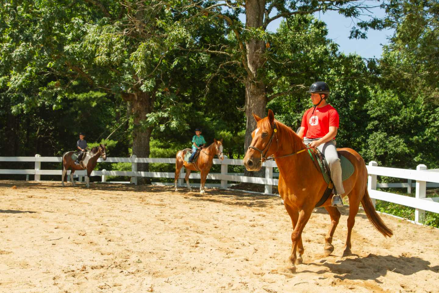 These rules include, “no shouting or running,” as horses can easily get a fright and be skittish. As well as general rules such as wearing long pants, always wear a helmet and closed toed shoes while riding.