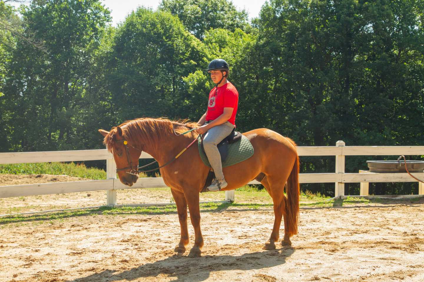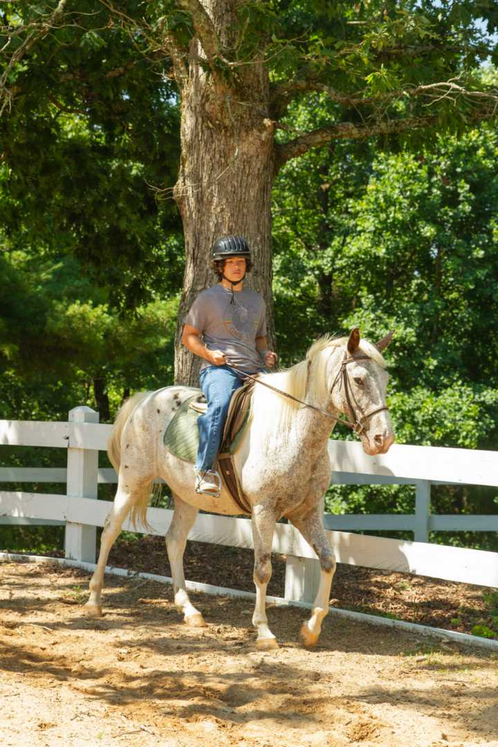 Andrew R. cabin 17, from Atlanta is also an intermediate rider that did his first trotting lesson. Andrew said that he was a bit nervous. He found the trot scary but fun. After a while he definitely grew his confidence and is proud to have overcome his fear. His goal for the session is to go on a trail ride, which he is excited for.