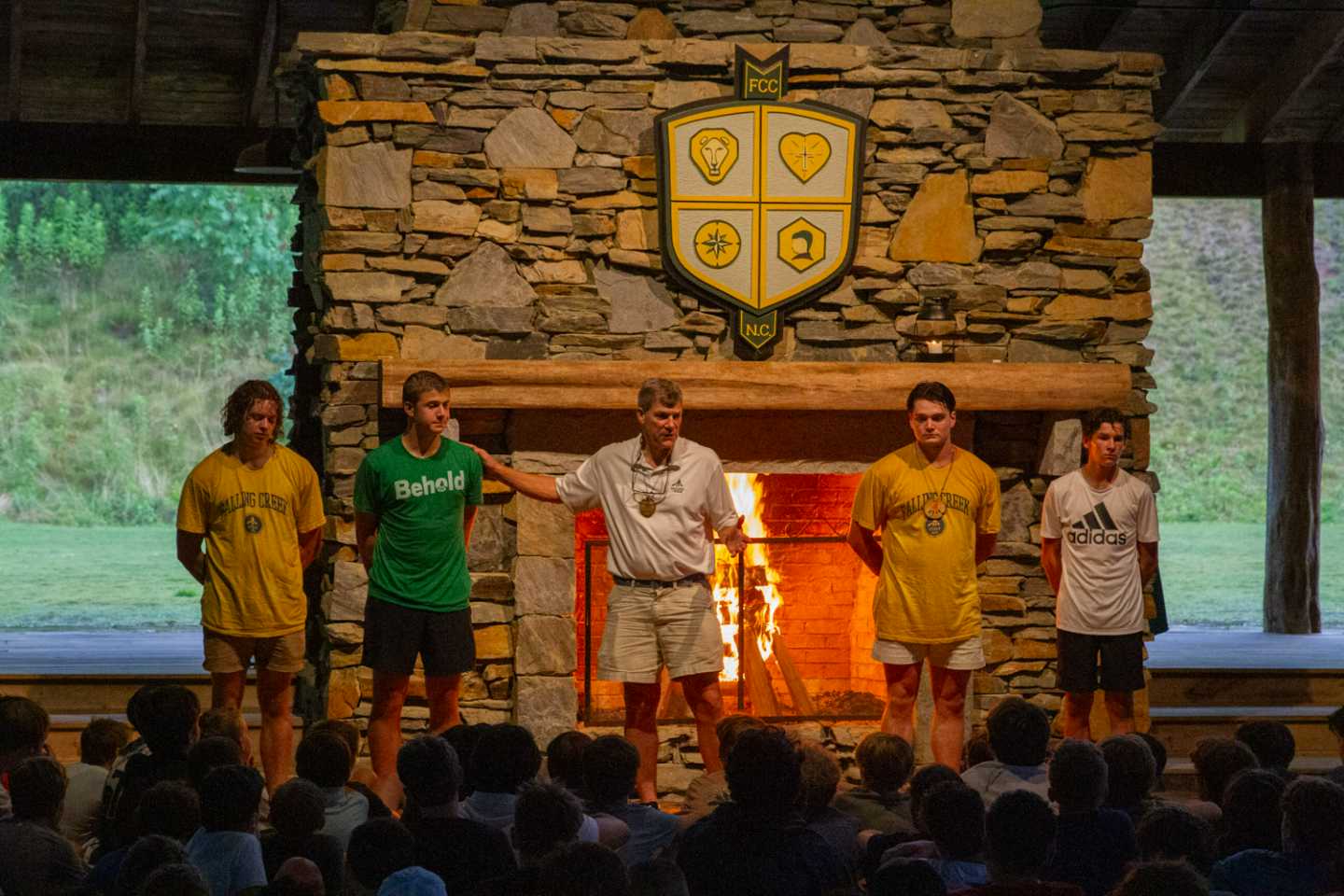 We brought to light the theme for the week, Honor, and found lessons of honor in the stories and skits. Yates introduced the Keepers of the Flame, counselor Will Cameron and camper Willam D. as well as our Journeymen, Beans (counselor Johnny Ervin) and camper Thad J. We got to meet the STEEL program members, as well as the Honor Council who will be representing the campers throughout the session.