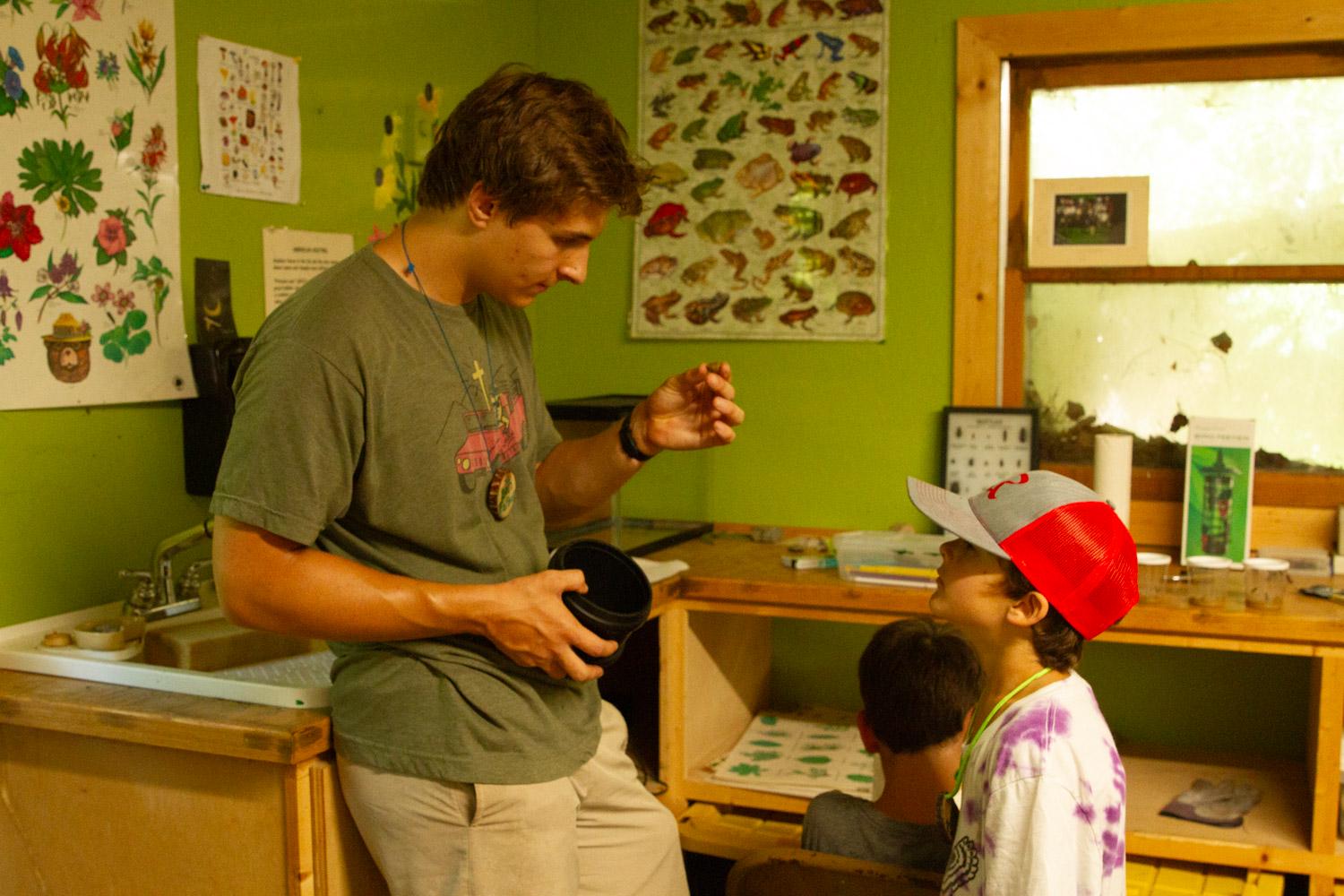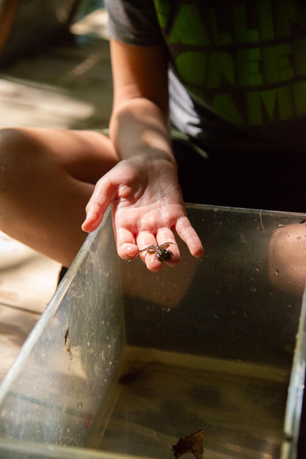 Pip G. from cabin 15 is from New York and he loves our nature activities. Pip says his favorite part is being able to find little animals, and learn about them. He gets to look at them, touch them and simply engage. He really enjoys learning about each animal, particularly, what they need, what you should or shouldn’t do. He is well aware that animals found in the wild should not be away from their natural habitat for very long.