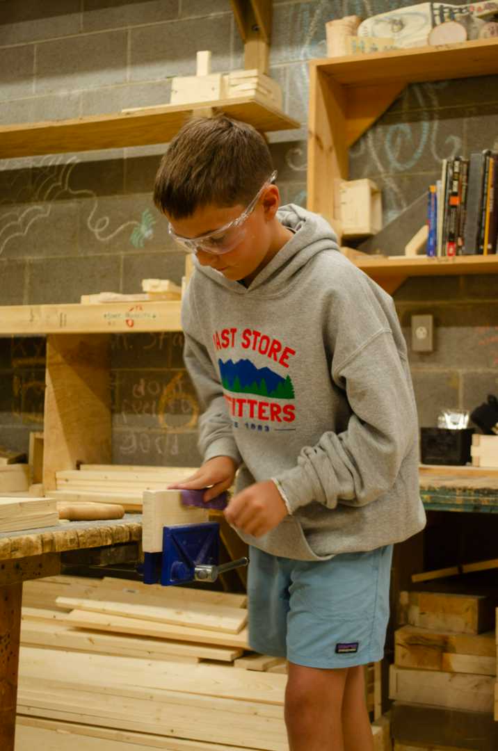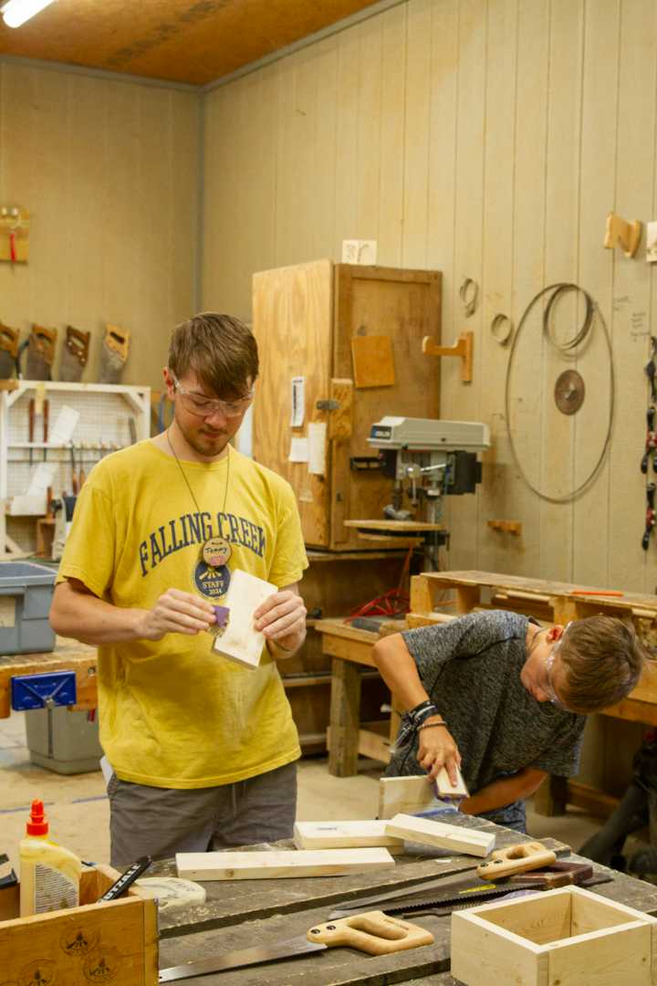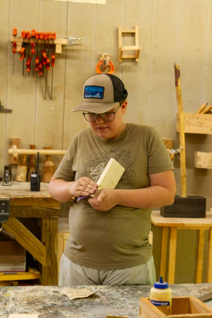Finn A. who is 9 years old and in cabin 3 is experiencing his 2nd year here with us at Falling Creek. He says that he really enjoys woodworking, because it is really cool to finish a product and have it look like something someone made professionally. Last year he made a Falling Creek sign, this year he is eagerly working on his first ever box. His goal is to create his box and have a finished product that makes him proud.