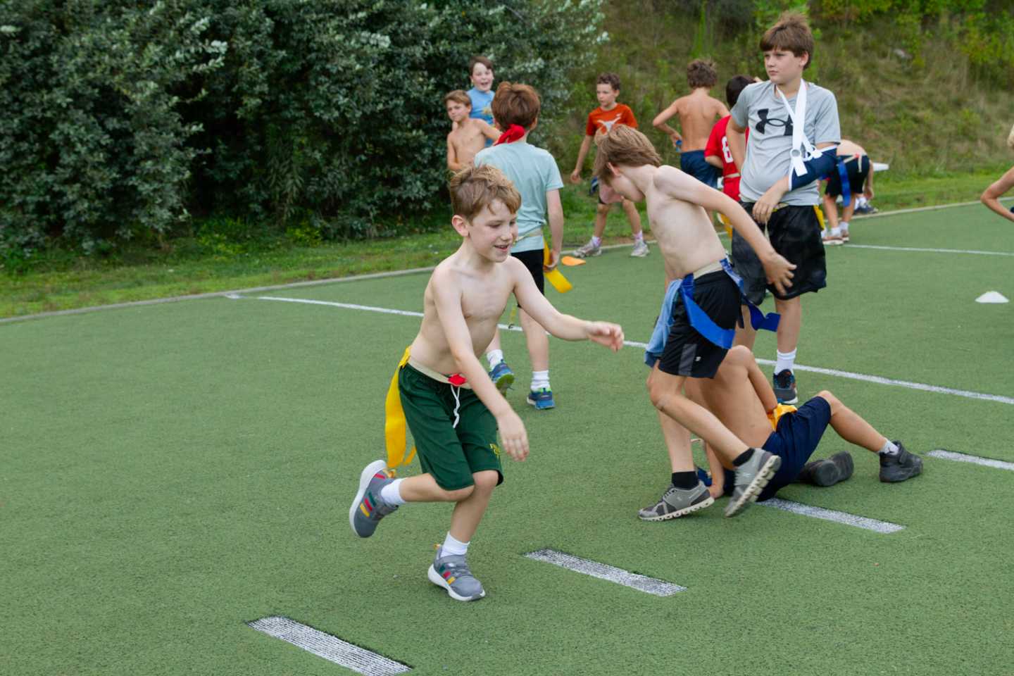 Football: Flag Football is like American Football but it is a no contact sport. They focus on both offense and defense, improving skills for positions including the kicker and quarterback.