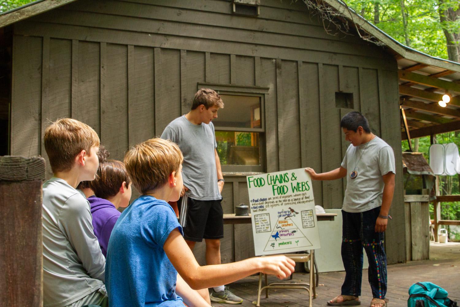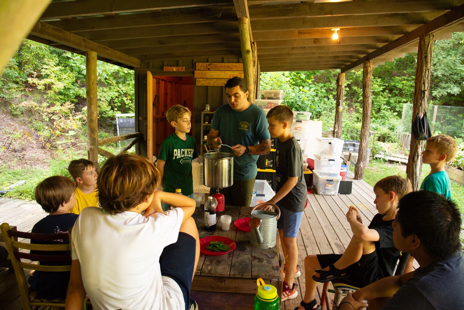 We also learn about identifying the different plants and flora. This is done often by taking nature hikes to various spots in camp. We identify certain plants as edible, for example sourwood which boys can chew on. Sassafras is another example, which can be used to make root beer.